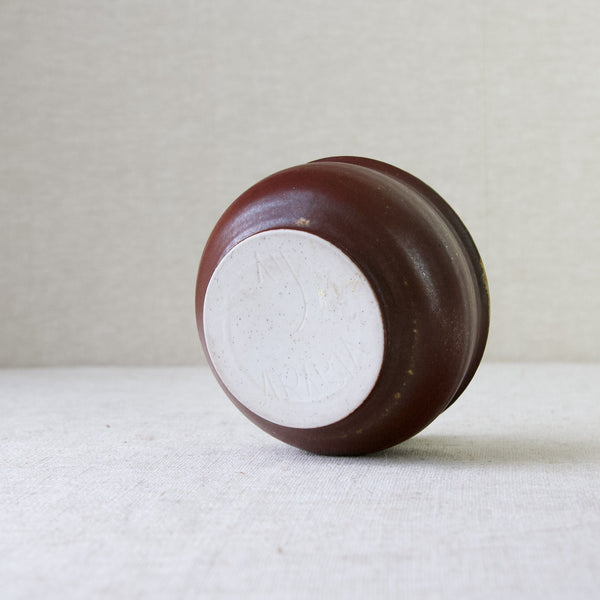 Anja Juurikkala joined Arabia in 1946 where she designed predominantly slip-cast figurines for serial production, along with wonderfully illustrative hand-painted patterns for dinnerware depicting fish & other animals. Her studio pieces such as this bowl, handmade by the artist herself, demonstrate her skill as a potter.