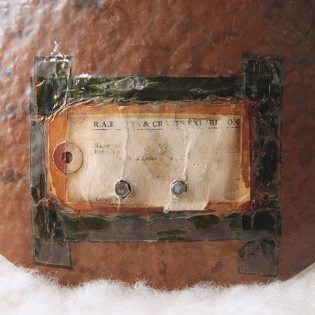 For us, this piece fantastically captures the zeitgeist of early twentieth century Britain. The design is both unmistakably Arts & Crafts, and an exemplar of the movement. Indeed, as per the label verso, this object was exhibited in an Arts & Crafts Exhibition Society exhibition.