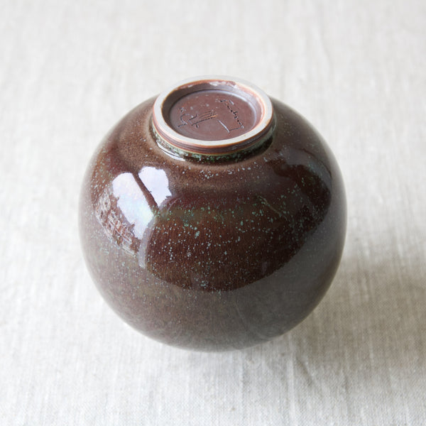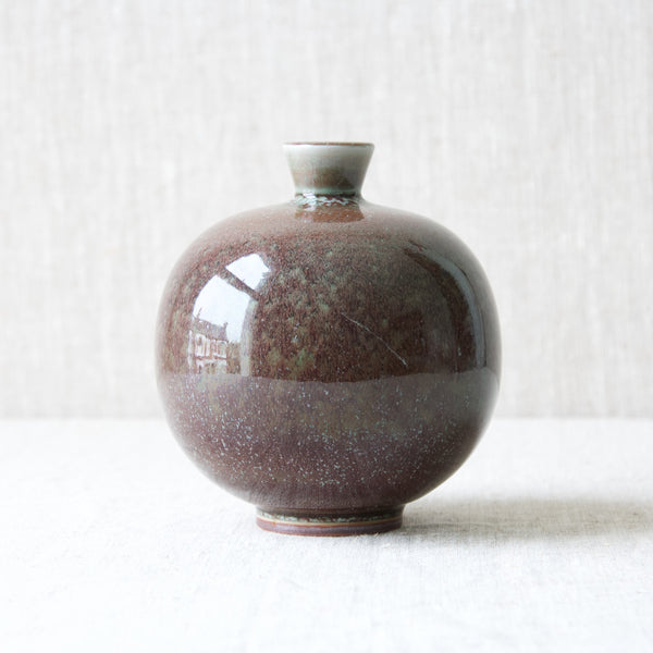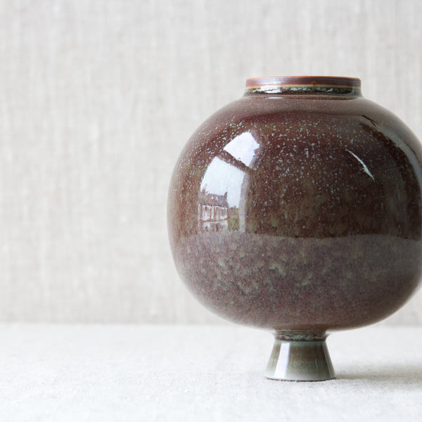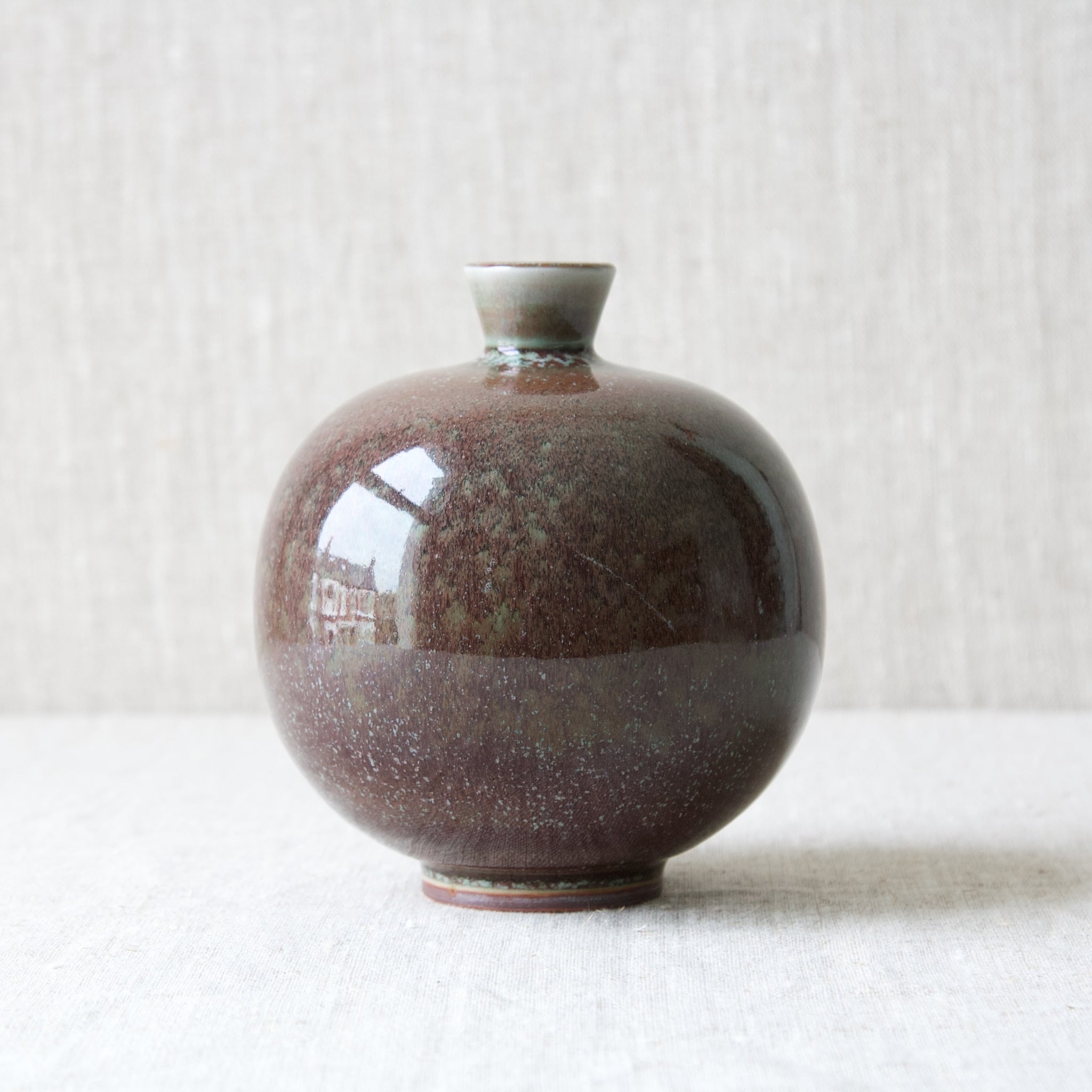 Like much of Friberg's work, the shape of this piece is inspired by ancient ceramics of the Far East; the squat, rotund form of this vase references antique Korean pottery. The spherical vase, like all of Friberg's ceramics, is beautifully proportioned and although quite large remains light in the hand, testament to Friberg's skill as a potter.