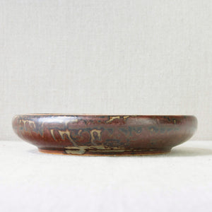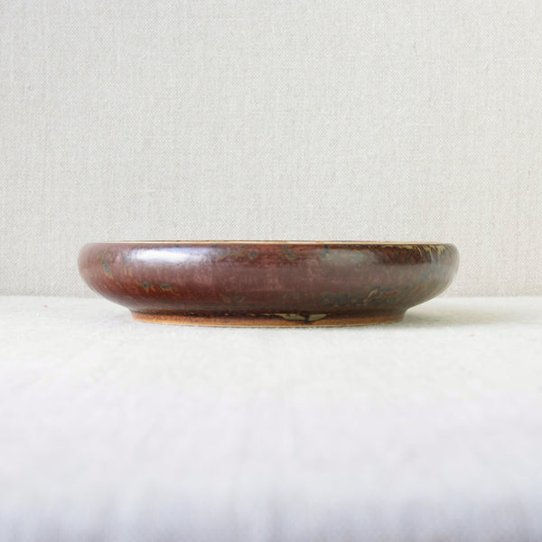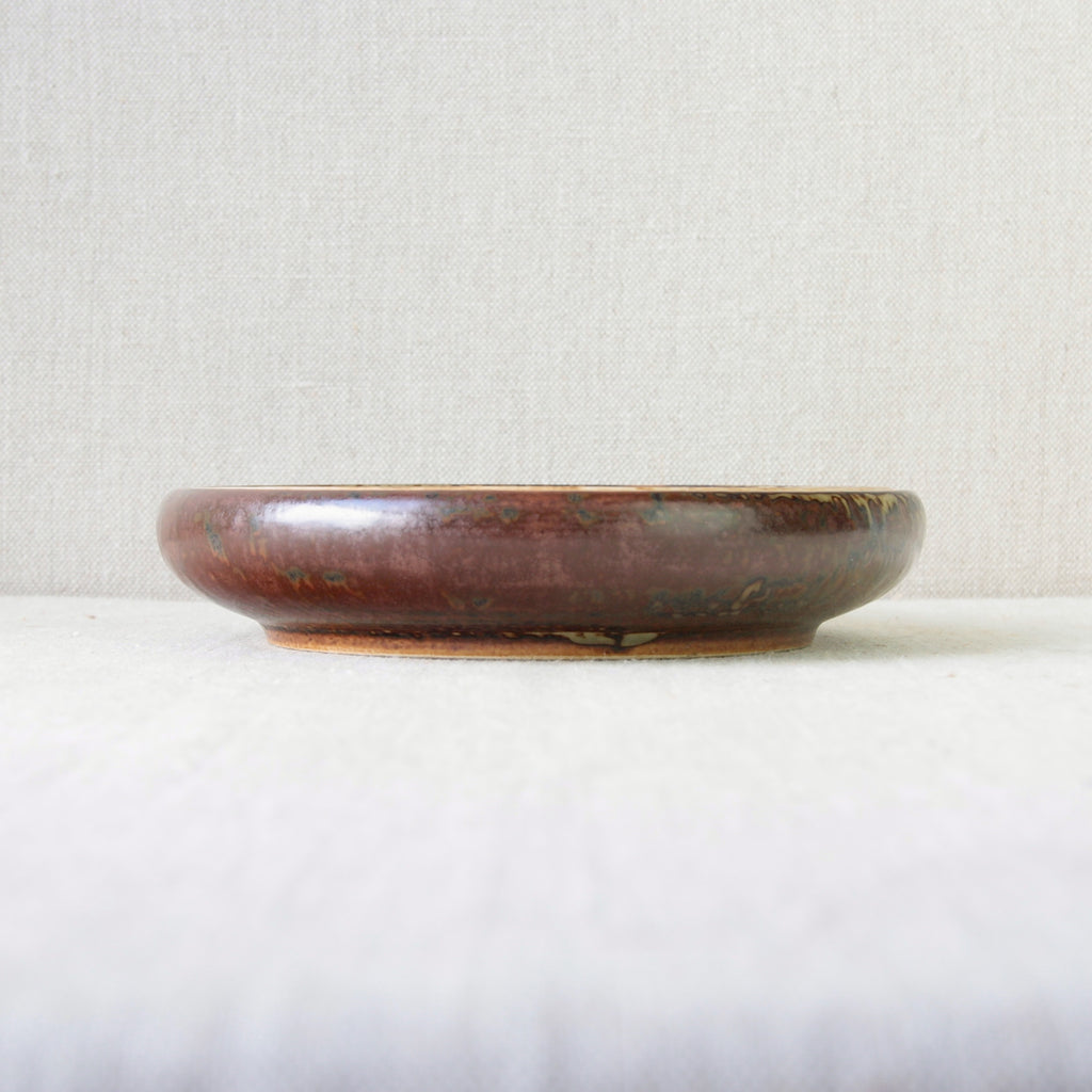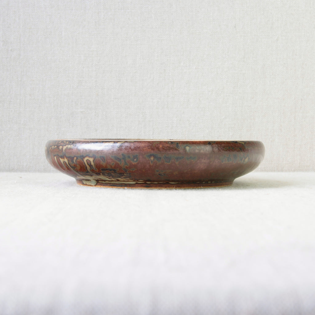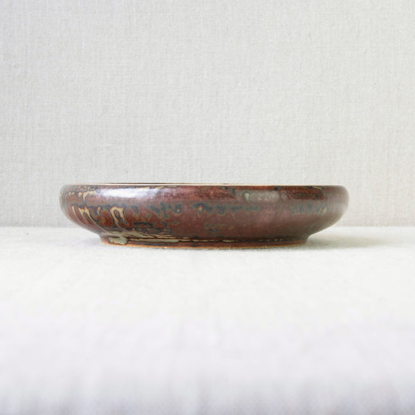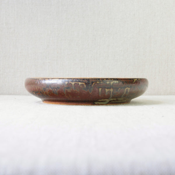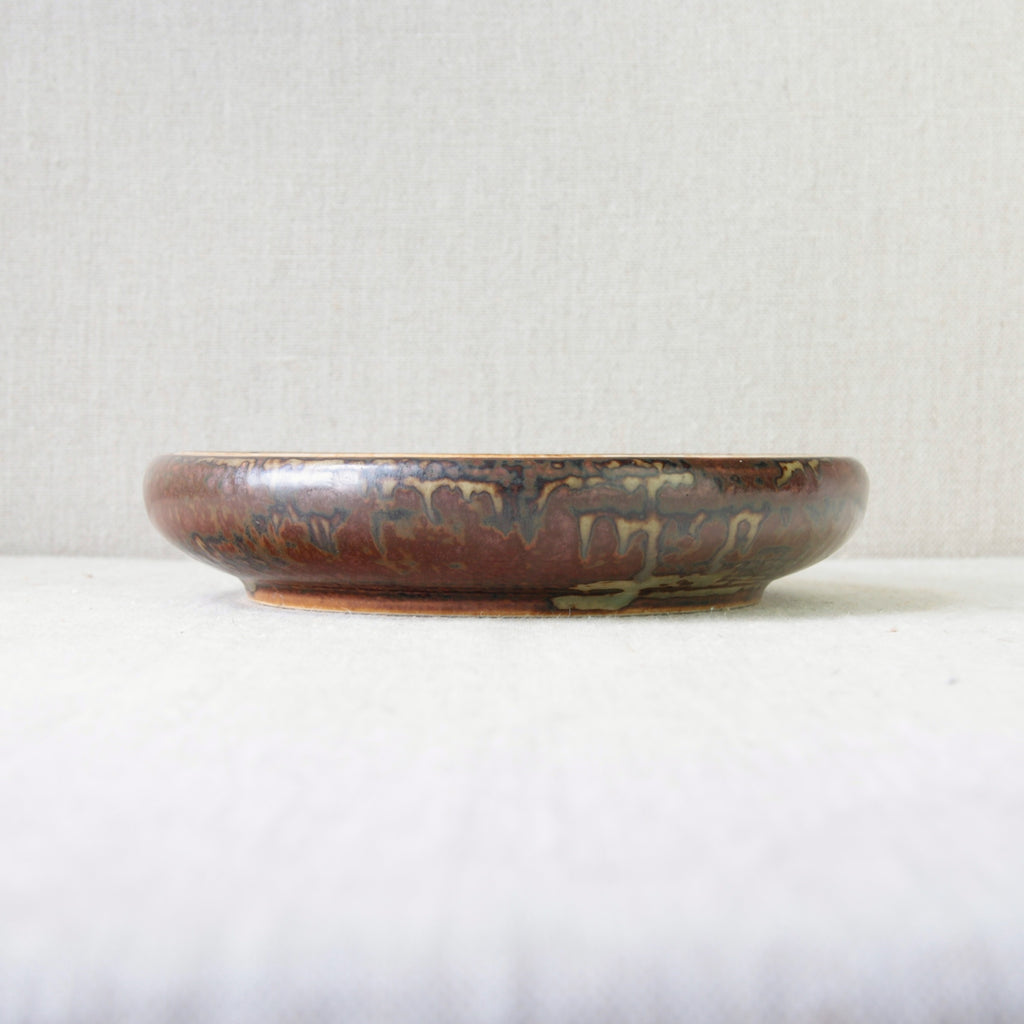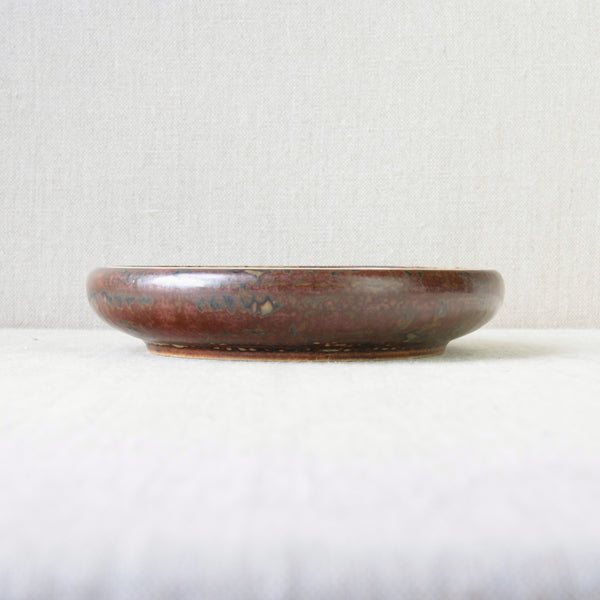 Although designed circa 1935, this hand-thrown shallow bowl with spectacular sung glaze was made in 1964.
