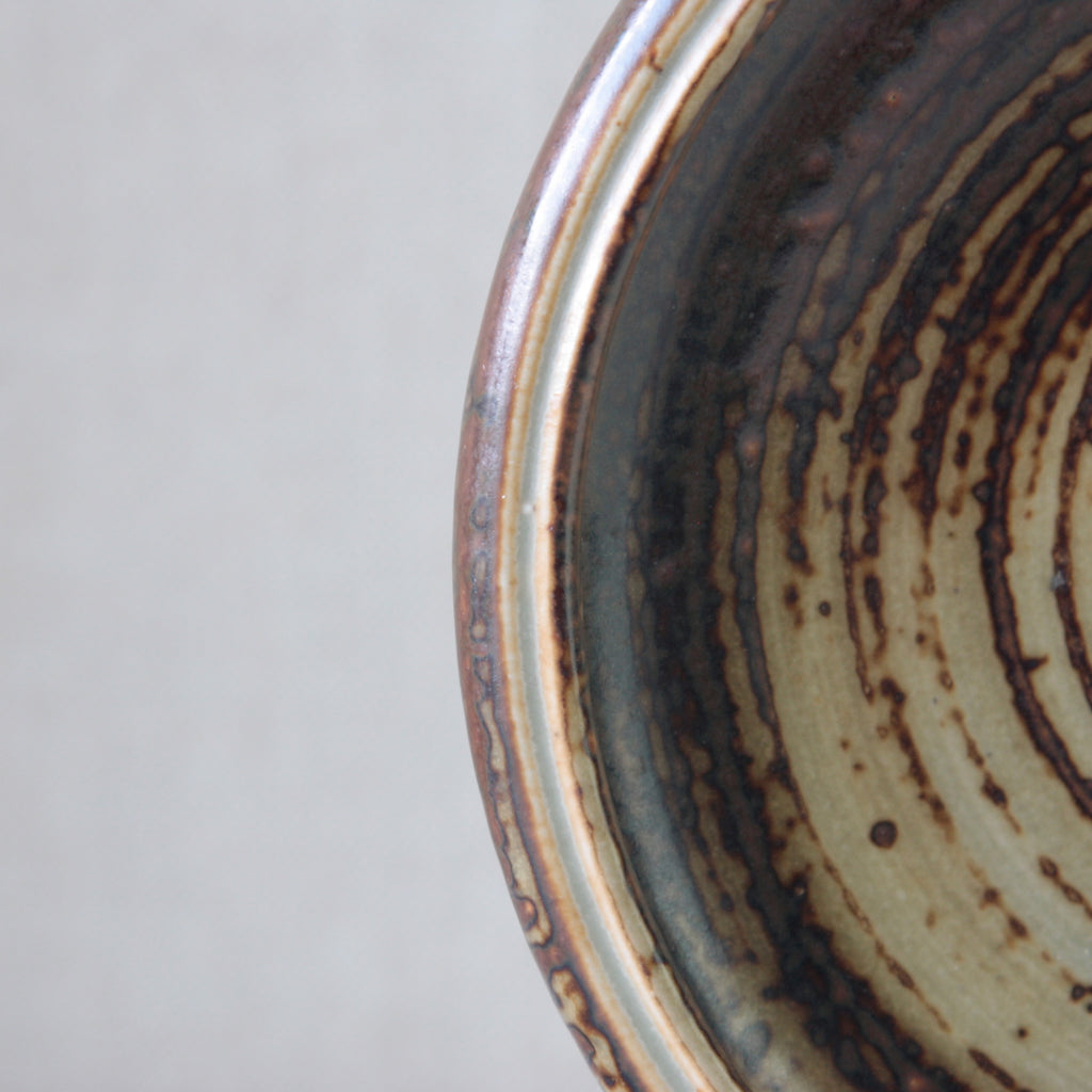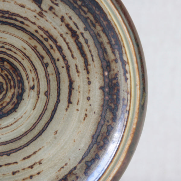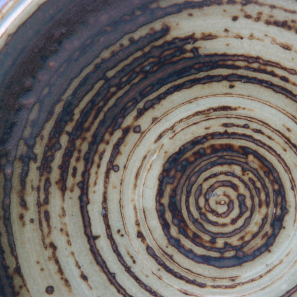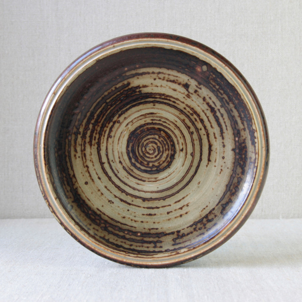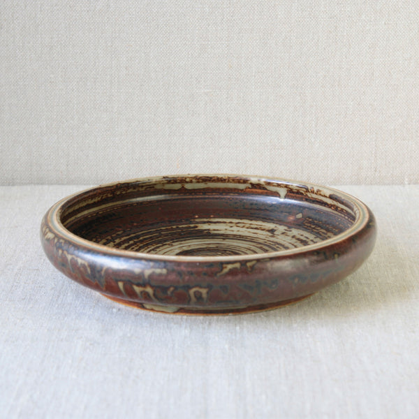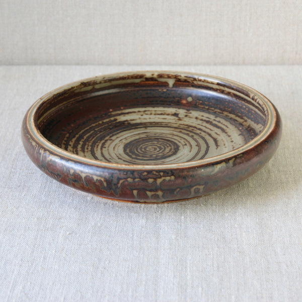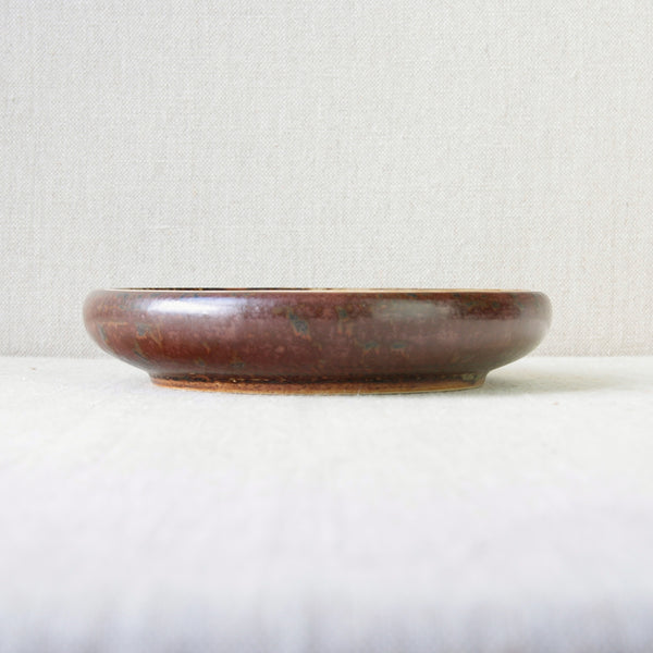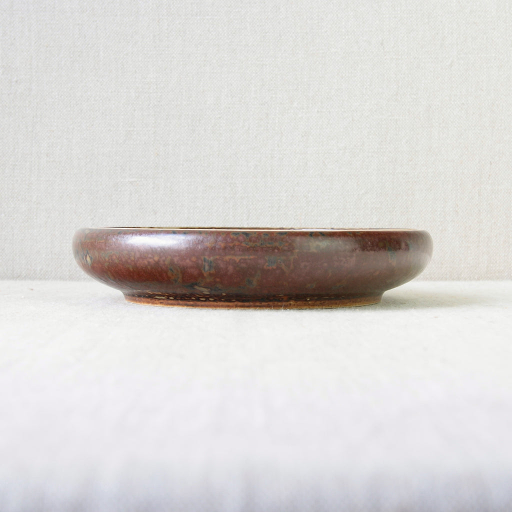 Although designed circa 1935, this hand-thrown shallow bowl with spectacular sung glaze was made in 1964.