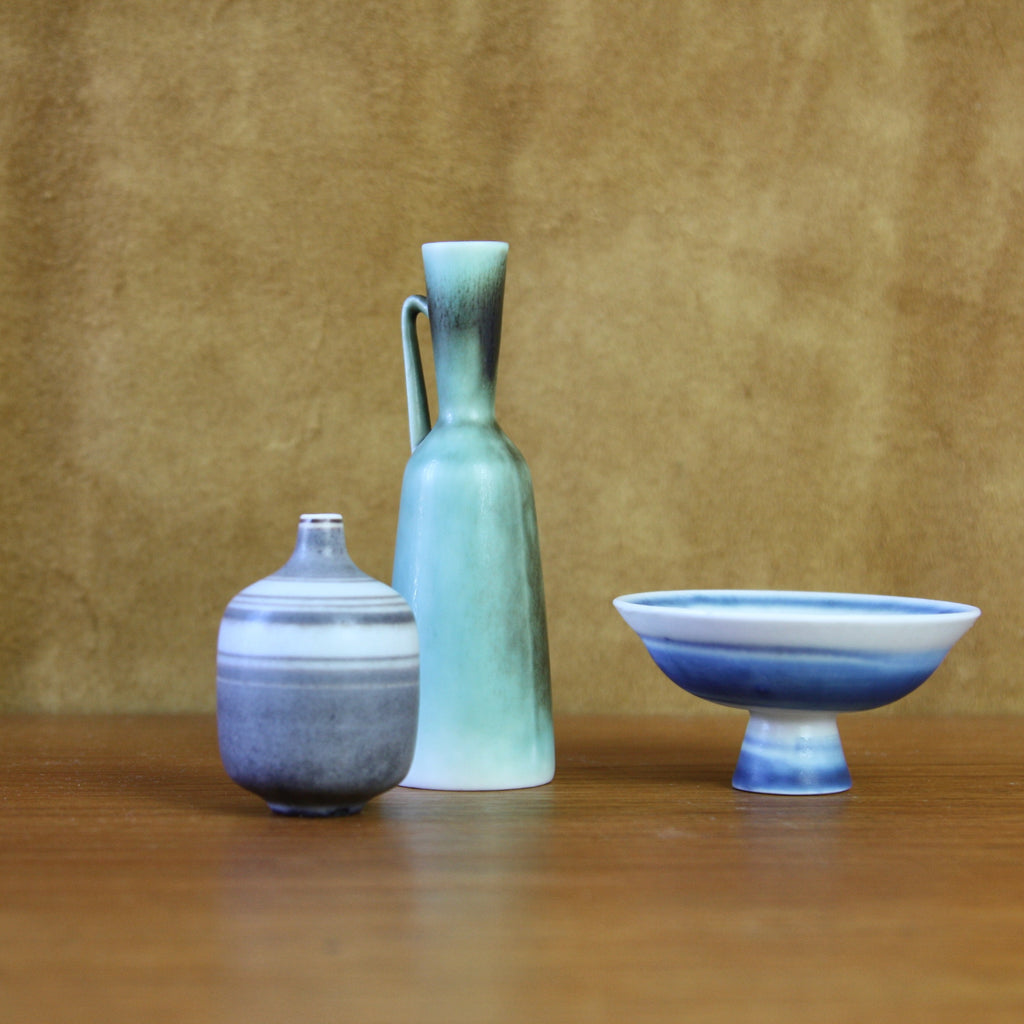 The Rörstrand factory are revered for their exciting glazes and elegant shapes. This small vase dates from around 1960; a time when the factory were leading the development of Sweden's modern aesthetic in ceramics.