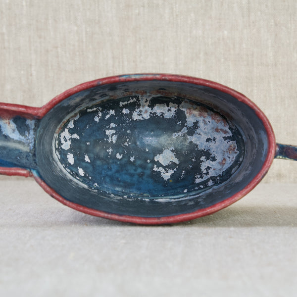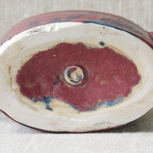 A porcelain Jug of flattened form with an intense predominantly red glaze made by Emmanuel Cooper, circa 2000.