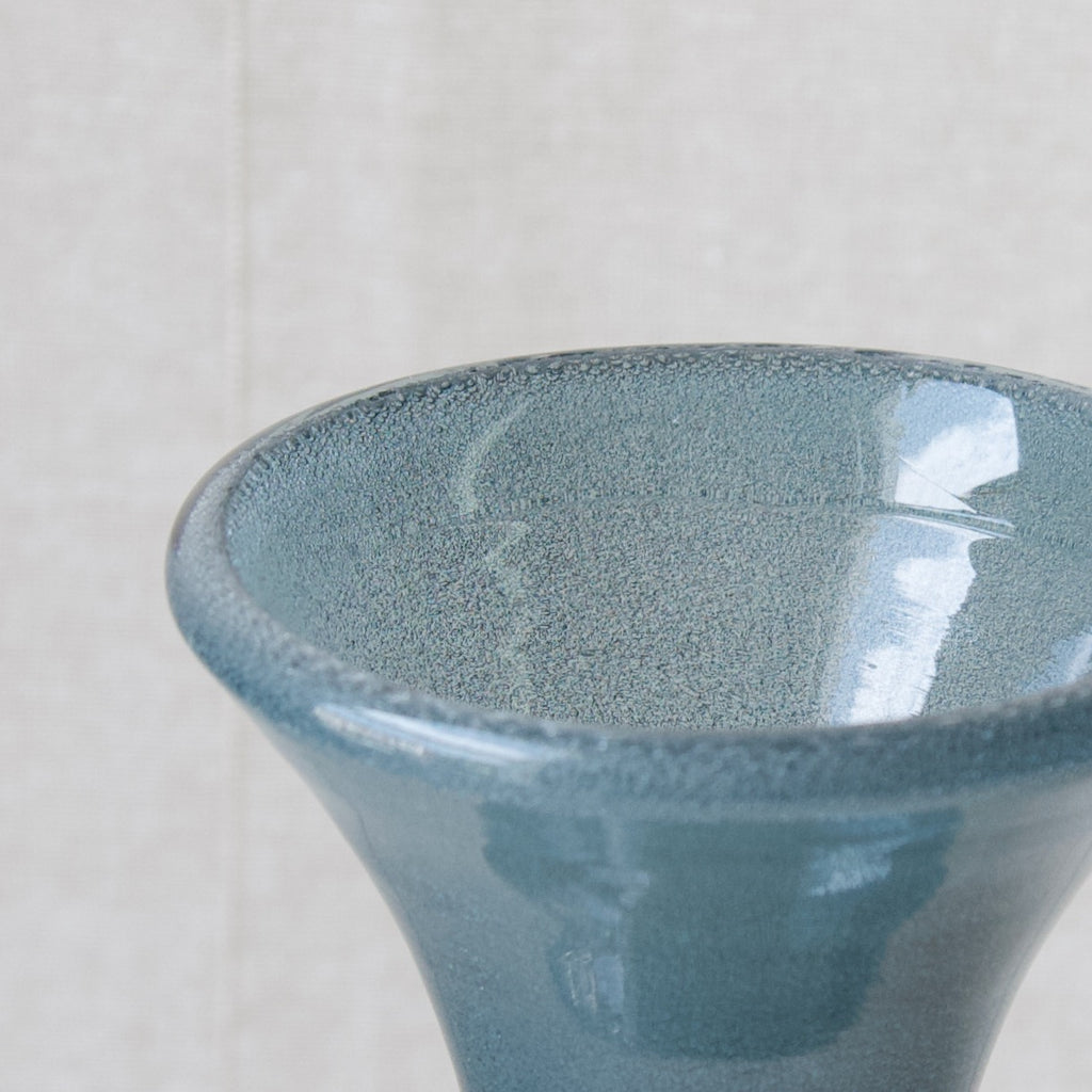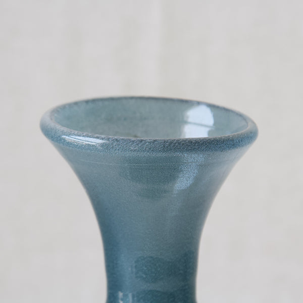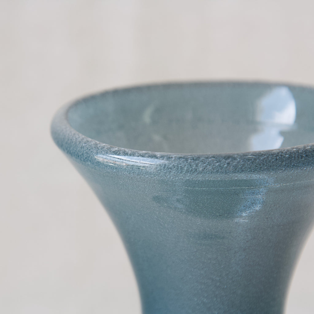 Höglund designed a collection of elegant free-blown shapes for his new glass recipe, all of which are now highly collectable. This tactile vase features a cylindrical body with curved shoulders and a dramatically flared rim. The distinct form of this vase was revisited by Höglund during the 1960's for later designs.