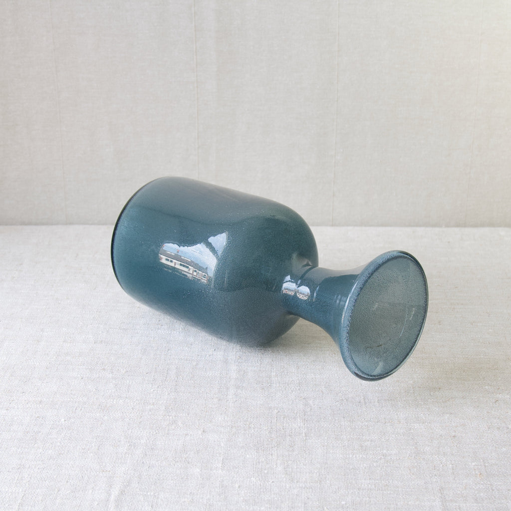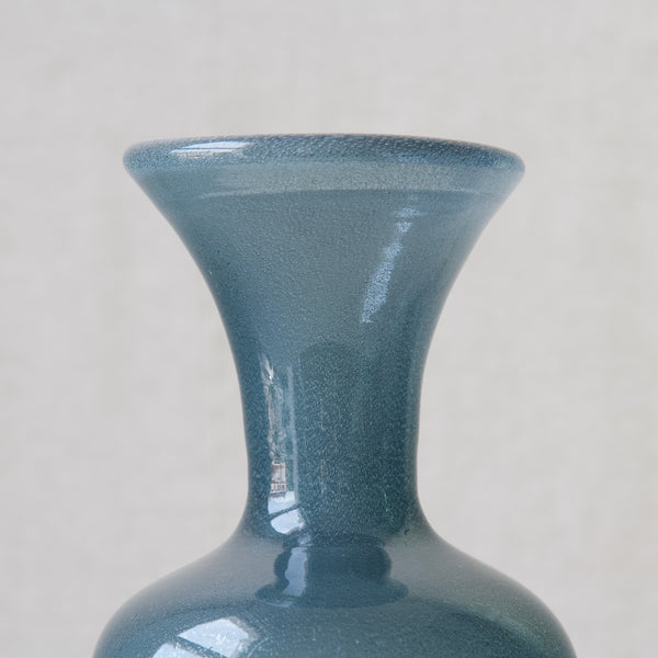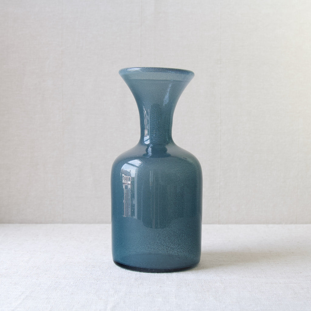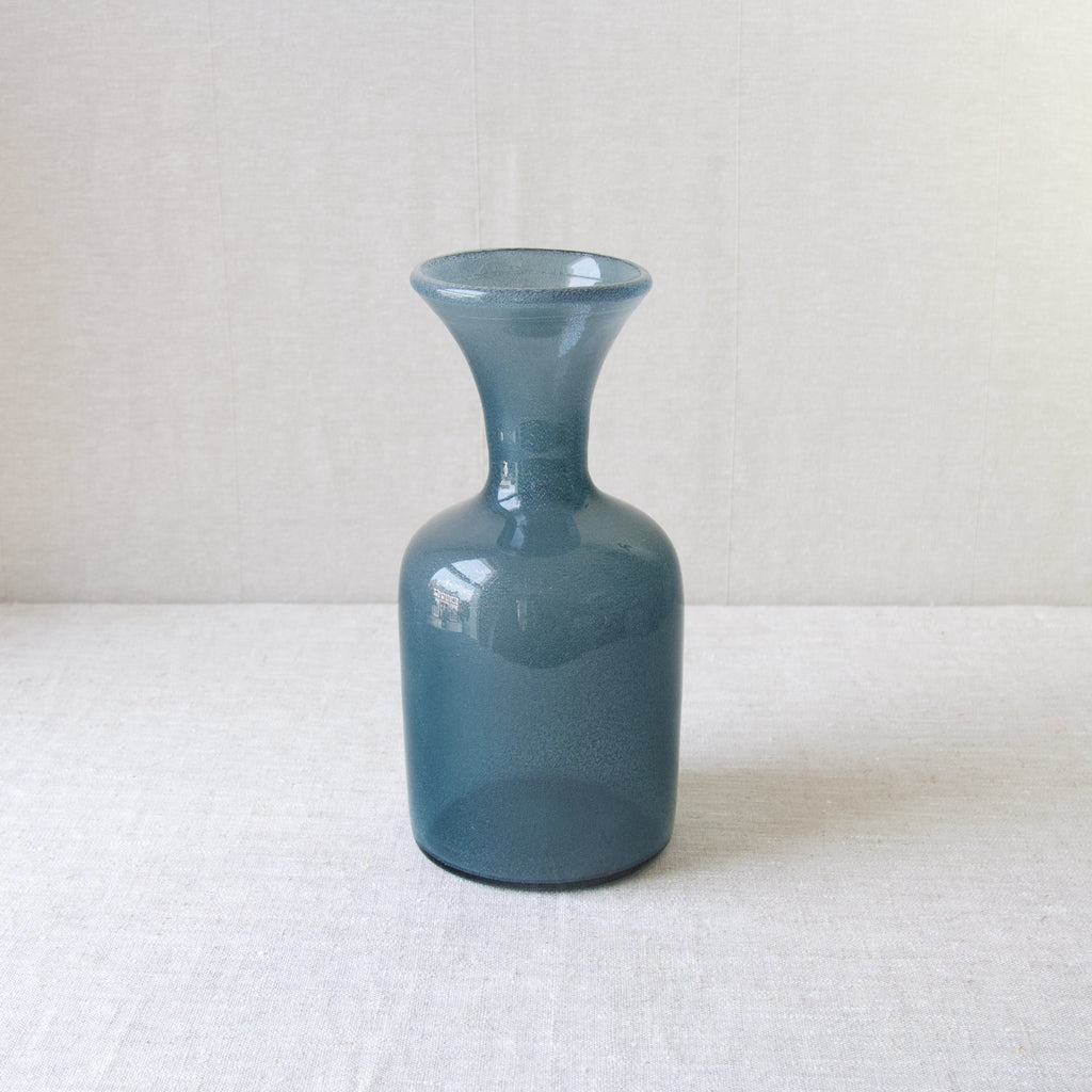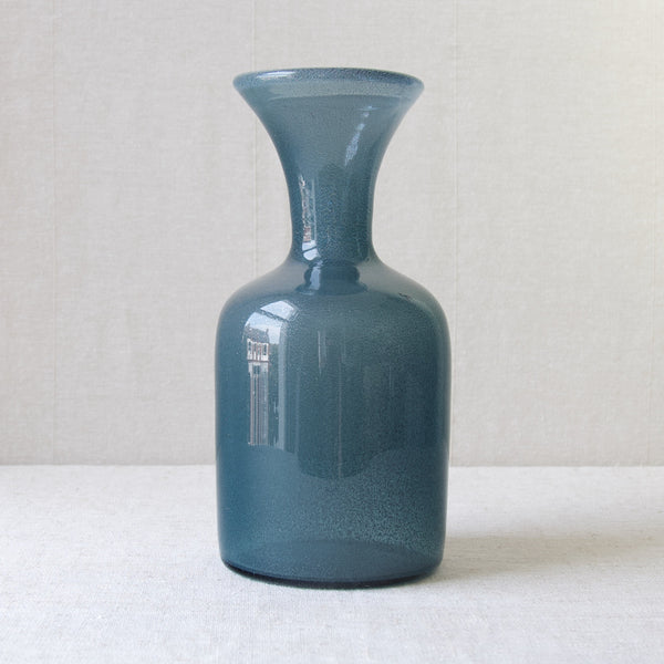 This shouldered vase is part of an experimental series by Höglund in which silicon carbide was added to the molten glass. This technique gives the glass an unconventional depth of character with an even covering of tiny metallic speckles.