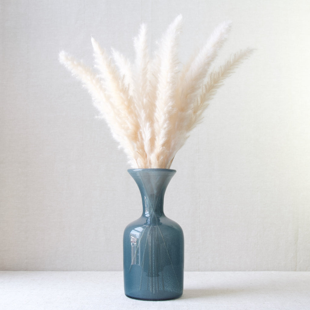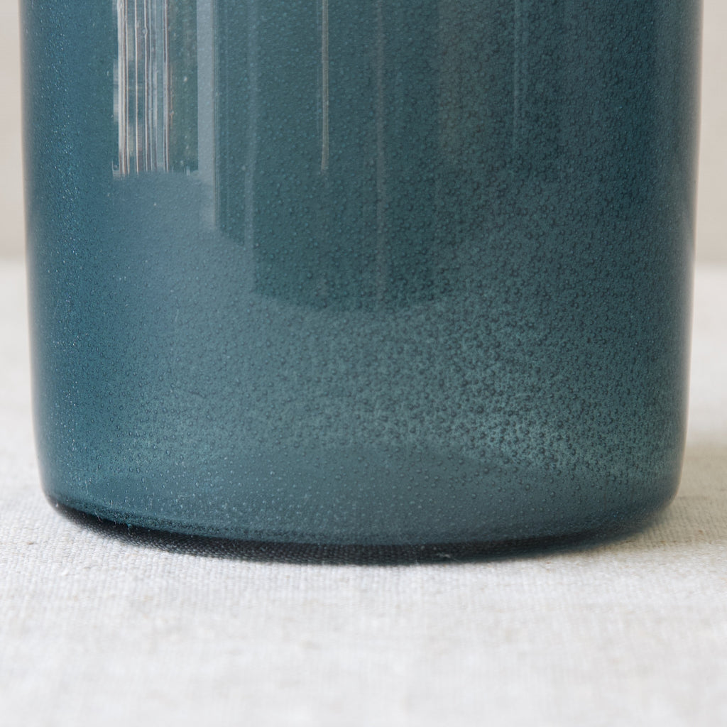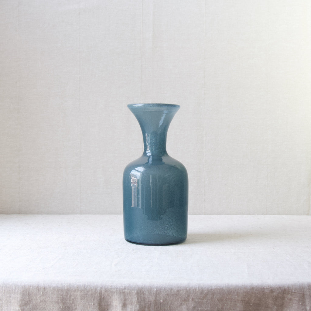 This shouldered vase is part of an experimental series by Höglund in which silicon carbide was added to the molten glass. This technique gives the glass an unconventional depth of character with an even covering of tiny metallic speckles.