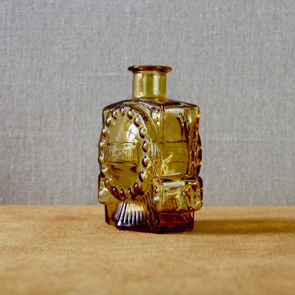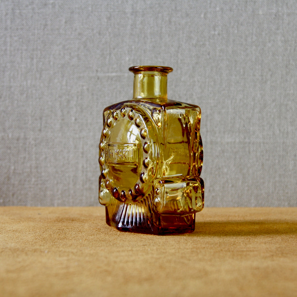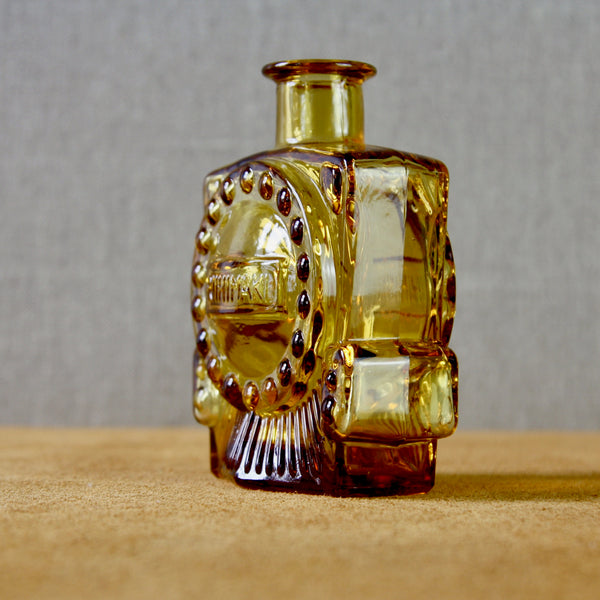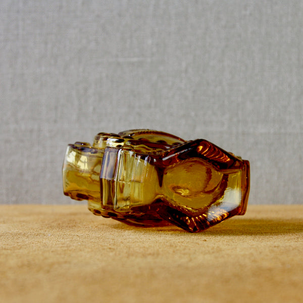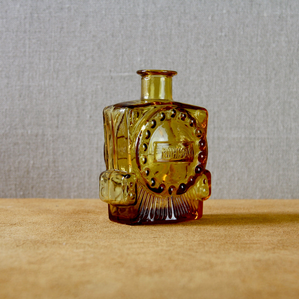 An amber 'Veturipullo' (Locomotive Bottle) by designer Erkkitapio Siiroinen, produced circa 1970 for Riihimäki glassworks.