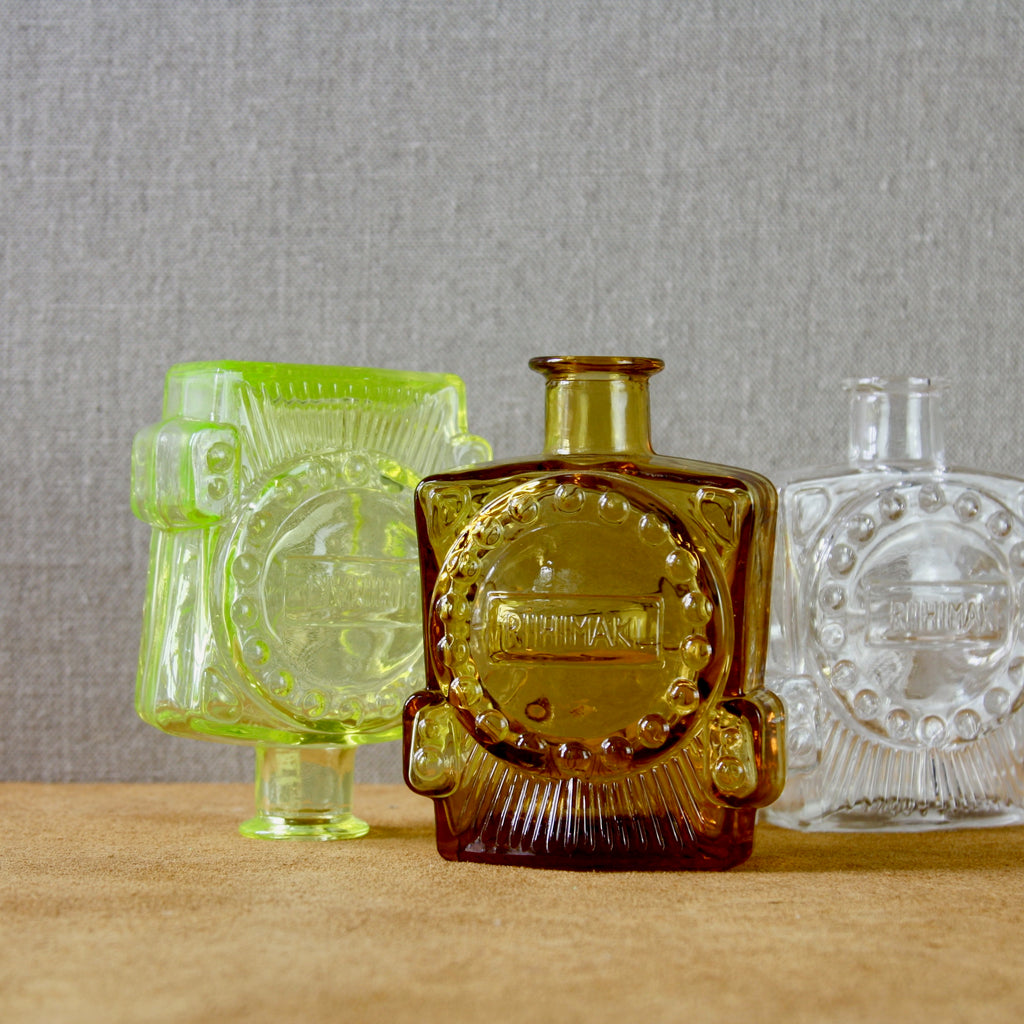 This collectible bottle was produced in many colours, and was designed to celebrate the 100th anniversary of the railway between Riihimäki and St. Petersburg.