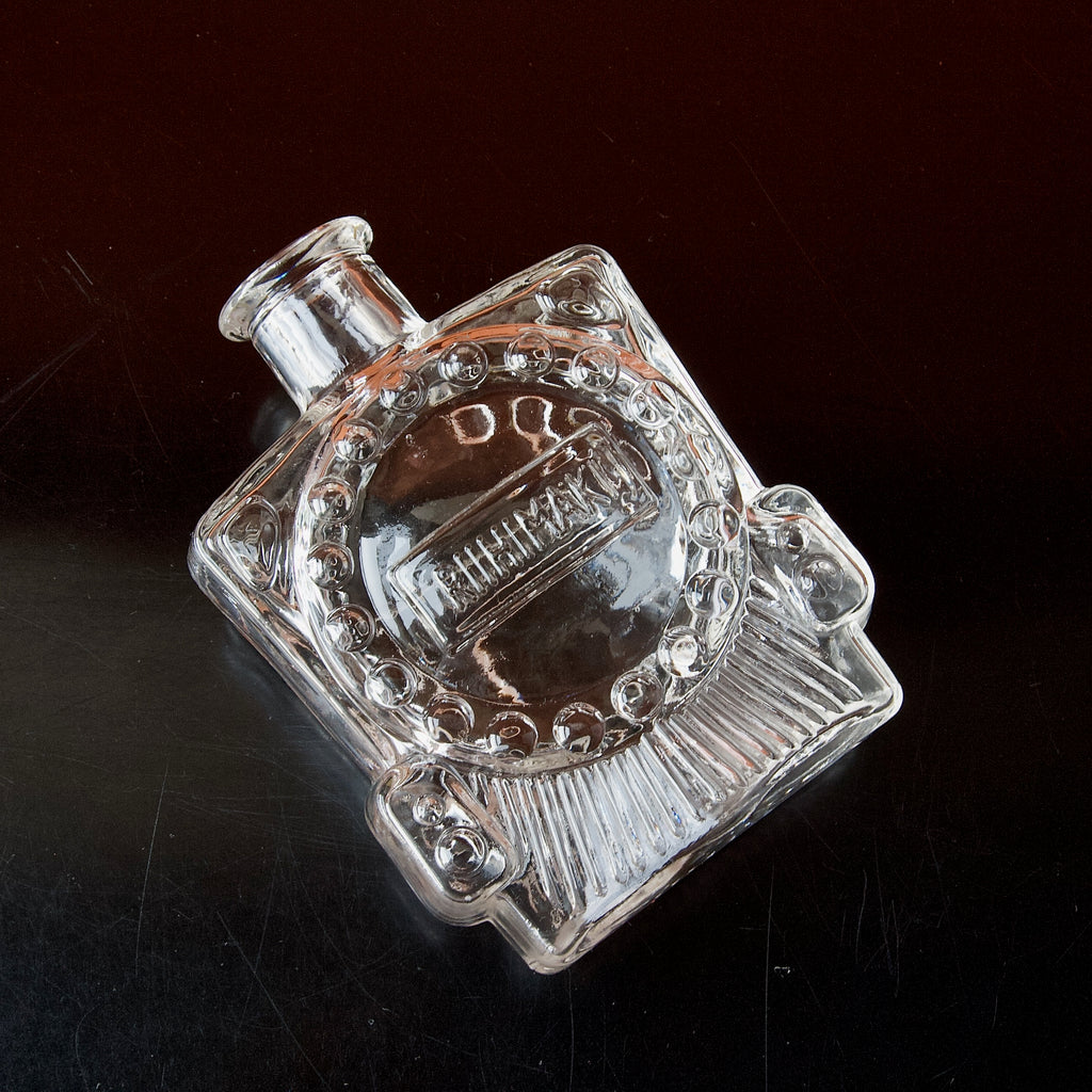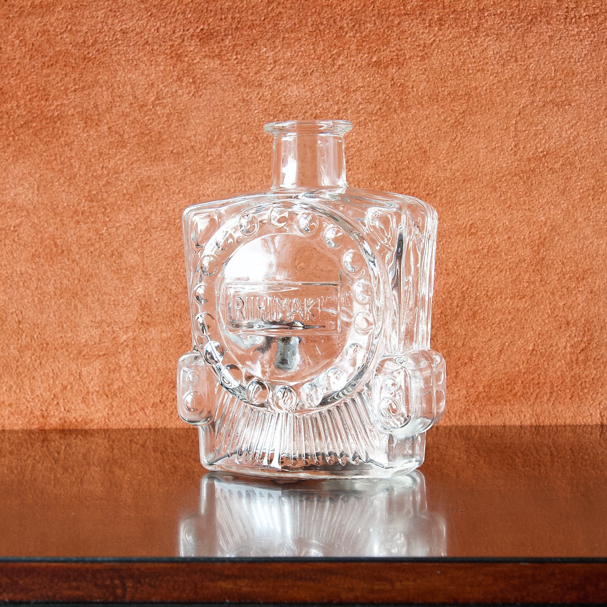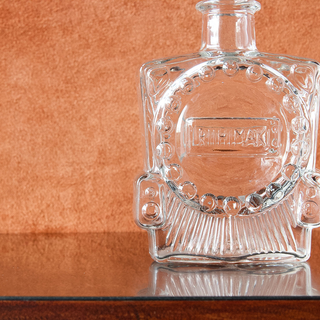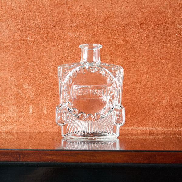 A clear 'Veturipullo' (Locomotive Bottle) by designer Erkkitapio Siiroinen, produced circa 1970 for Riihimäki glassworks.