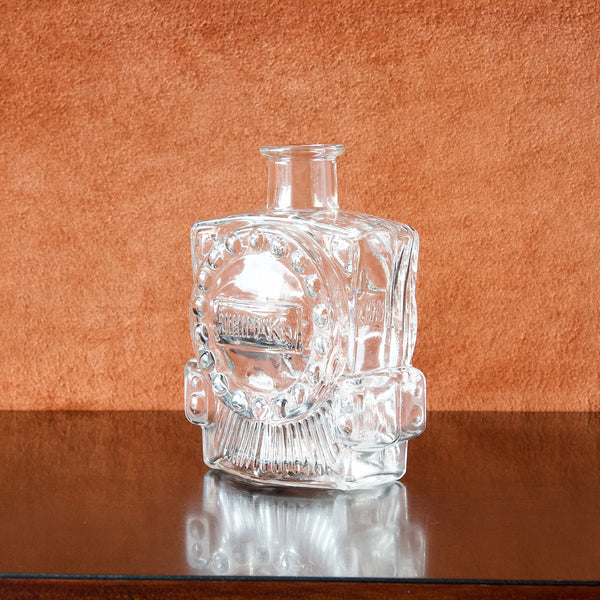 The bottle has been made from clear glass, and takes on the form of a steam train. This collectible piece was produced in many colours, and was designed to celebrate the 100th anniversary of the railway between Riihimäki and St. Petersburg.