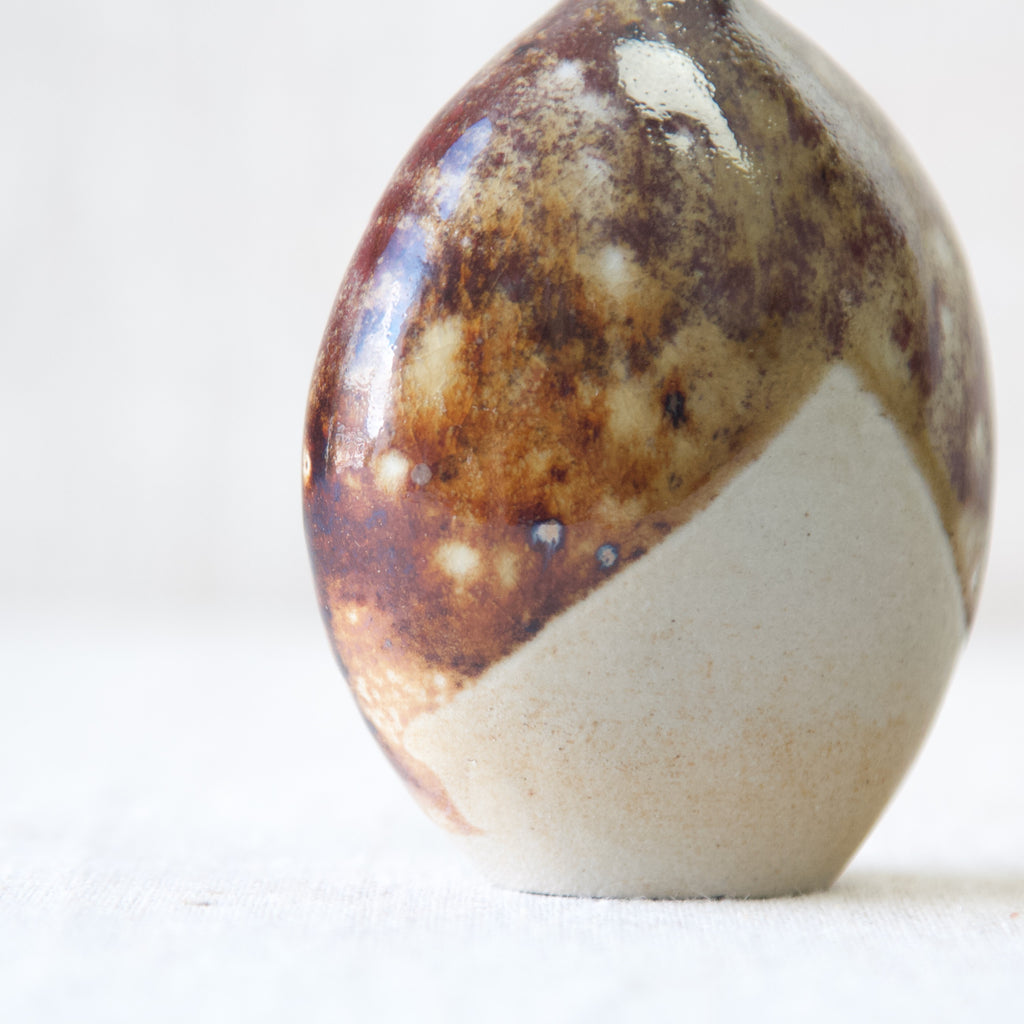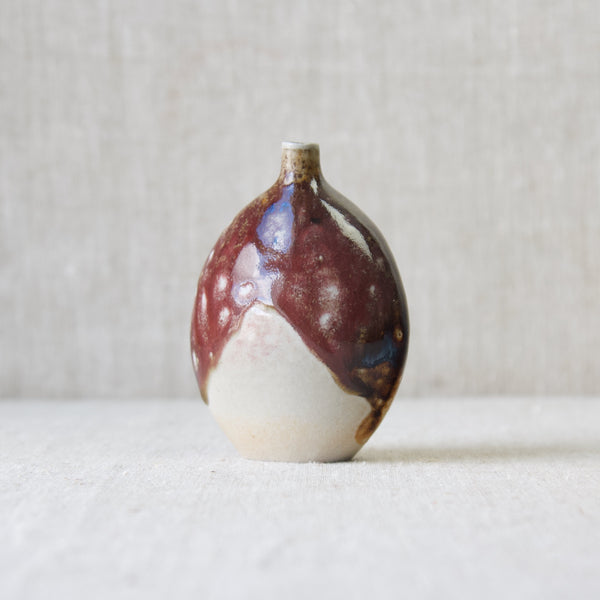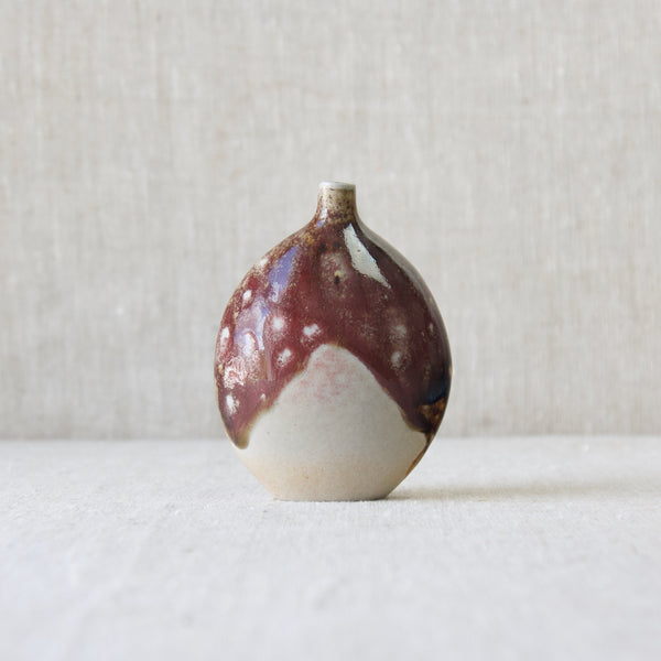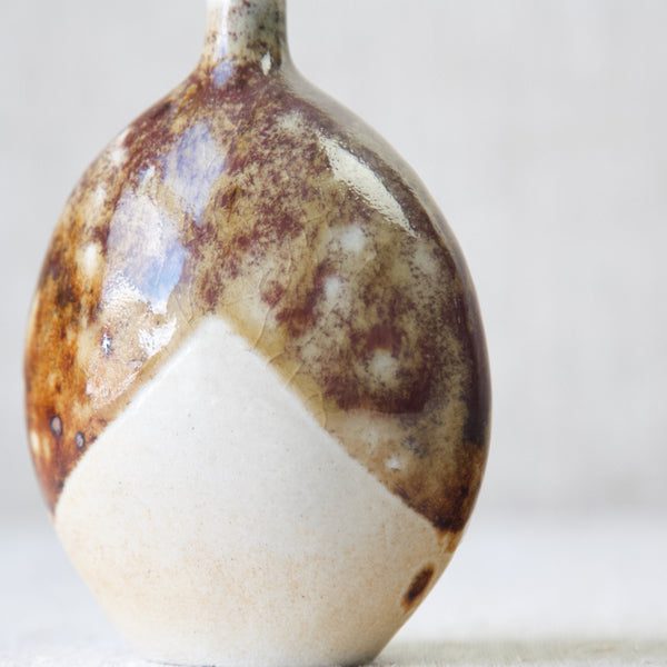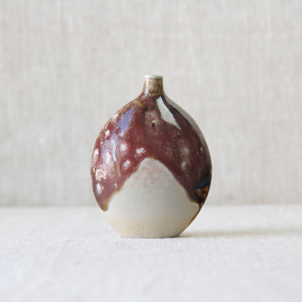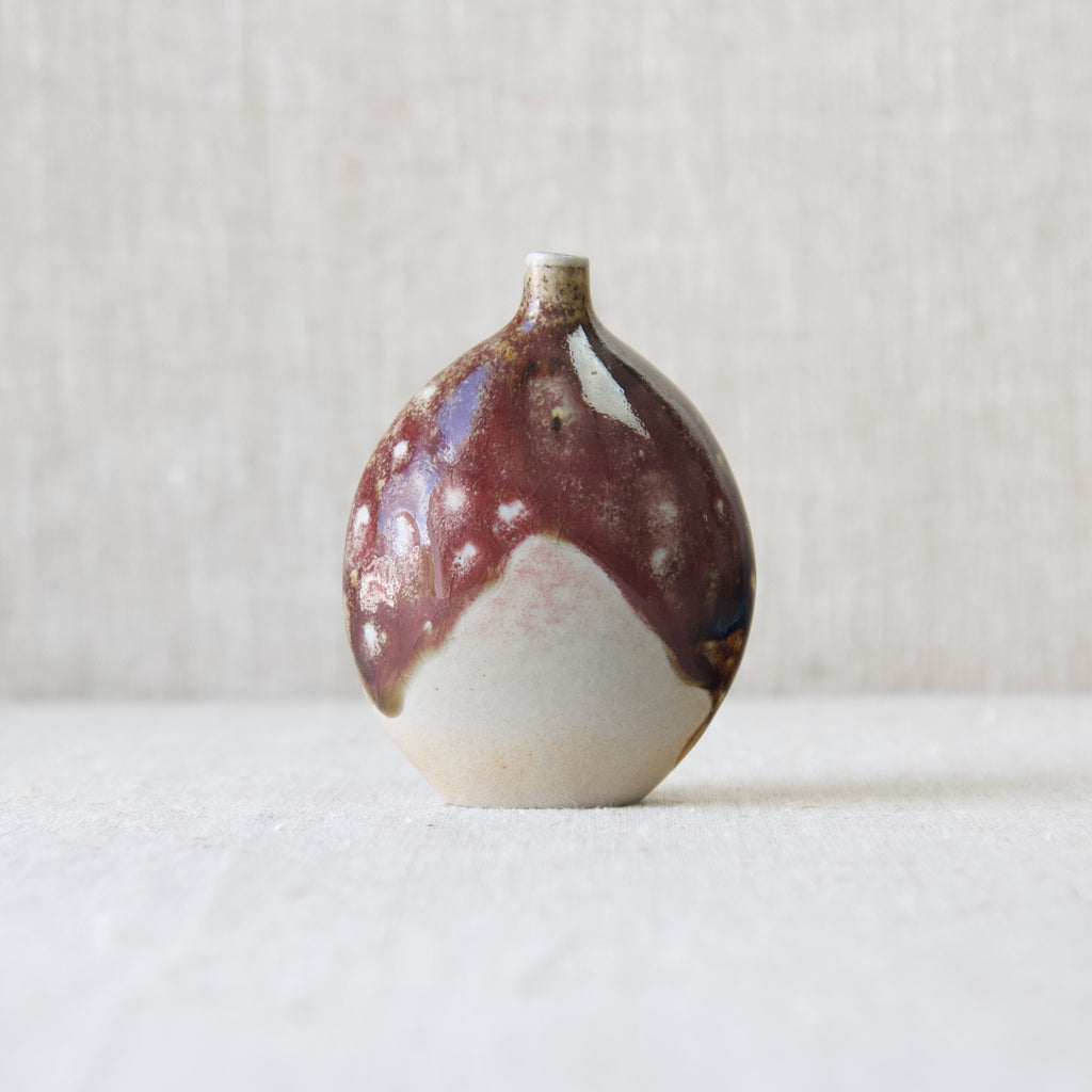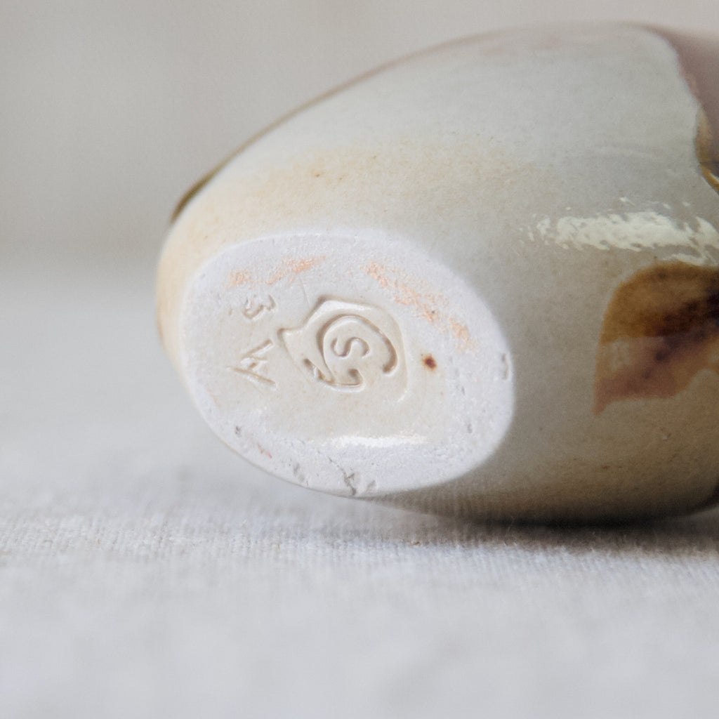The distinctive form of this piece is a flattened oval with a narrow neck. The shape is highly tactile, and sits perfectly in the hand like a smooth beach stone.