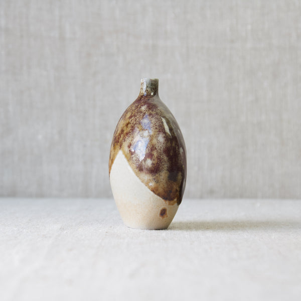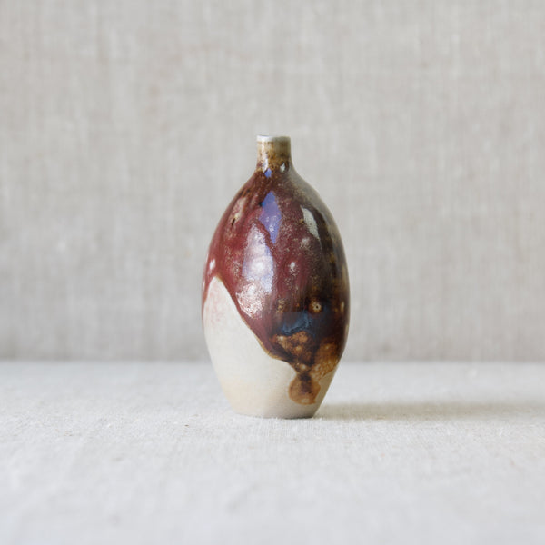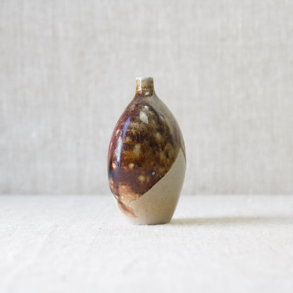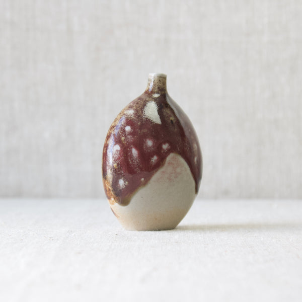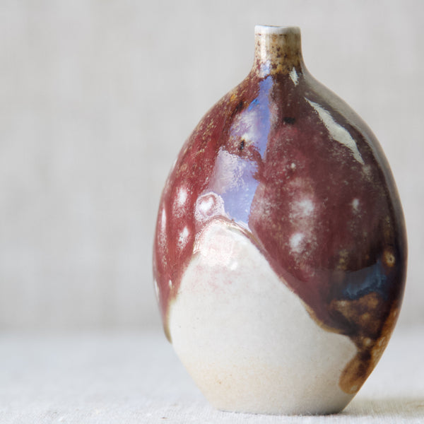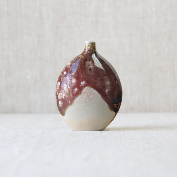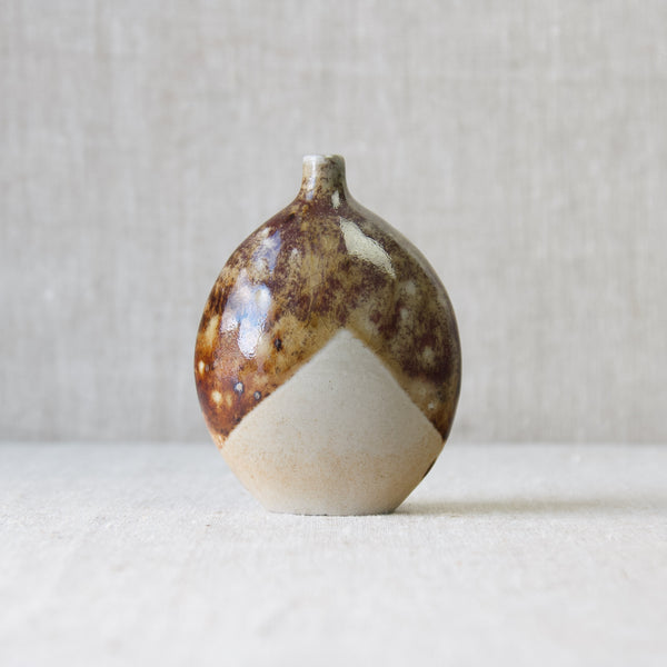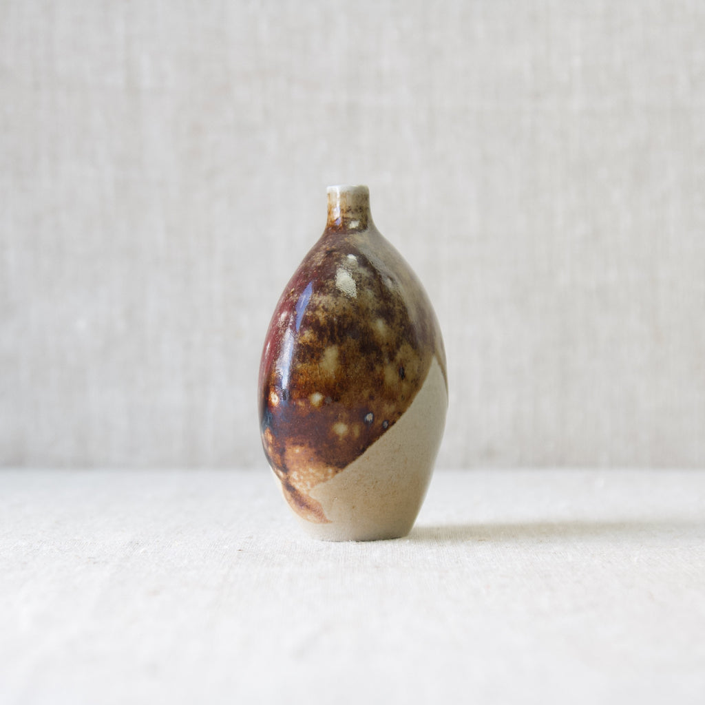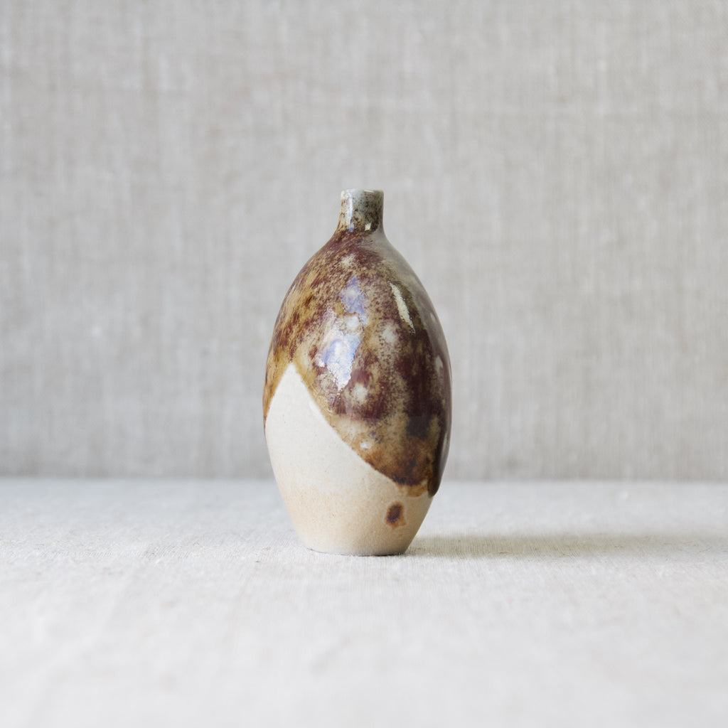 The distinctive form of this piece is a flattened oval with a narrow neck. The shape is highly tactile, and sits perfectly in the hand like a smooth beach stone.