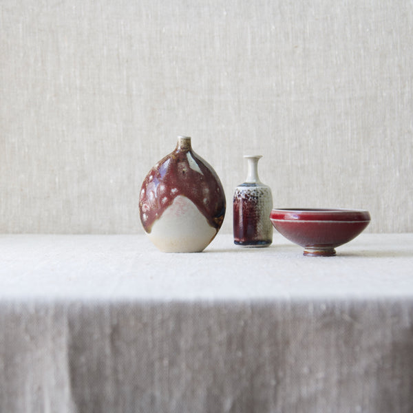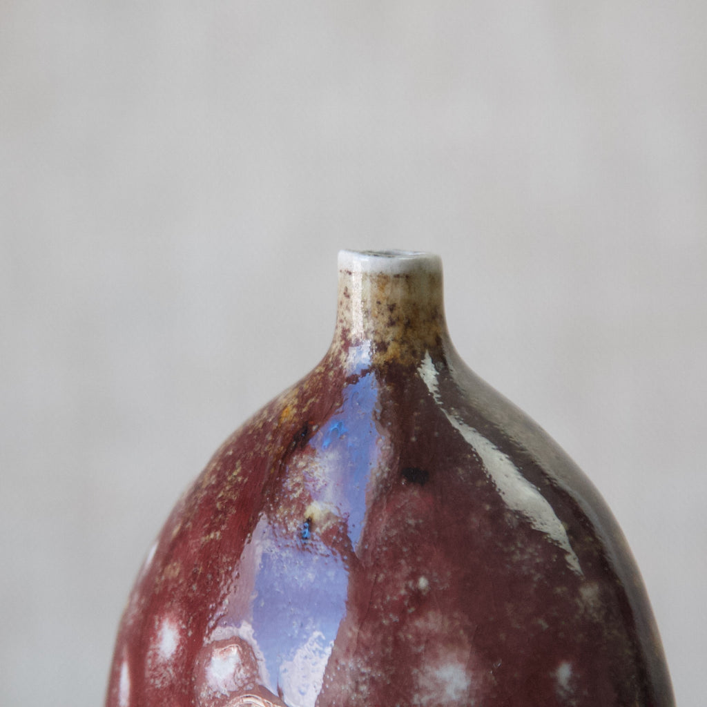 An exquisite vase with oxblood glaze, handmade by Guy Sydenham at his Green Island studio, Poole, C.1980.