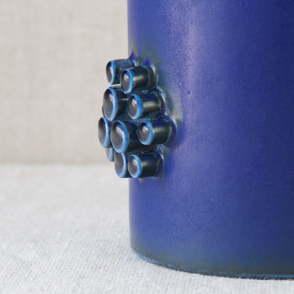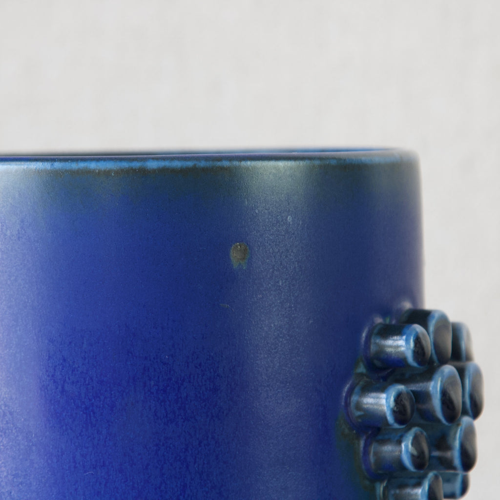 The richly pigmented cobalt glaze is beautiful and bold. The matte glaze has subtle variations in colour across the piece with darker pools and droplets of navy blue.