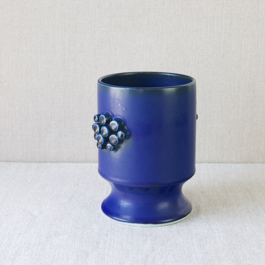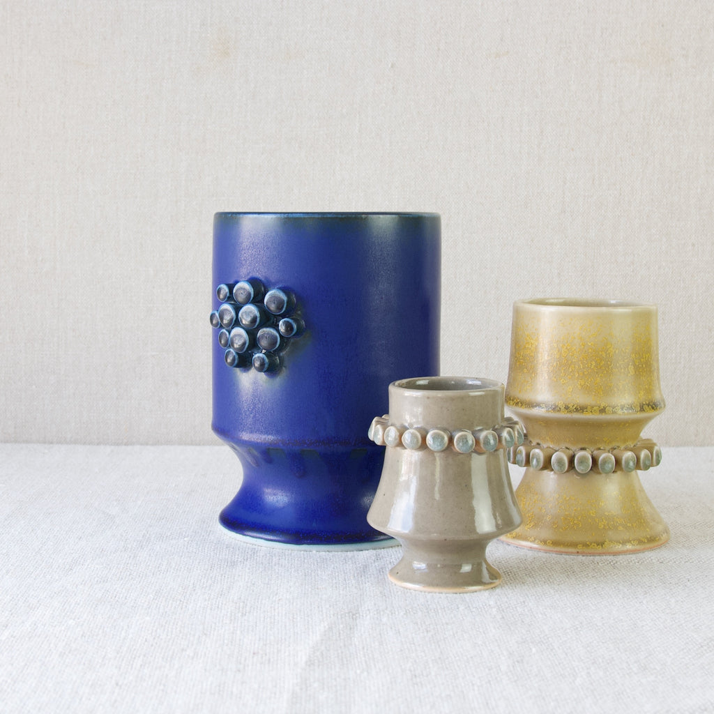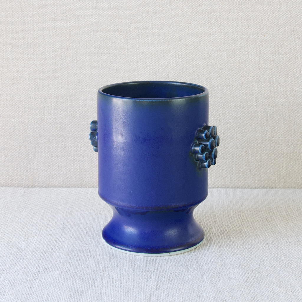 The unique & playful character of this object is enhanced by the application of peculiar space-age lug handles, crafted from extruded clay cylinders. These distinct cylinders, a hallmark of Bengtson's collection, give the vase, and the entire series, a strange and somewhat otherworldly charm.