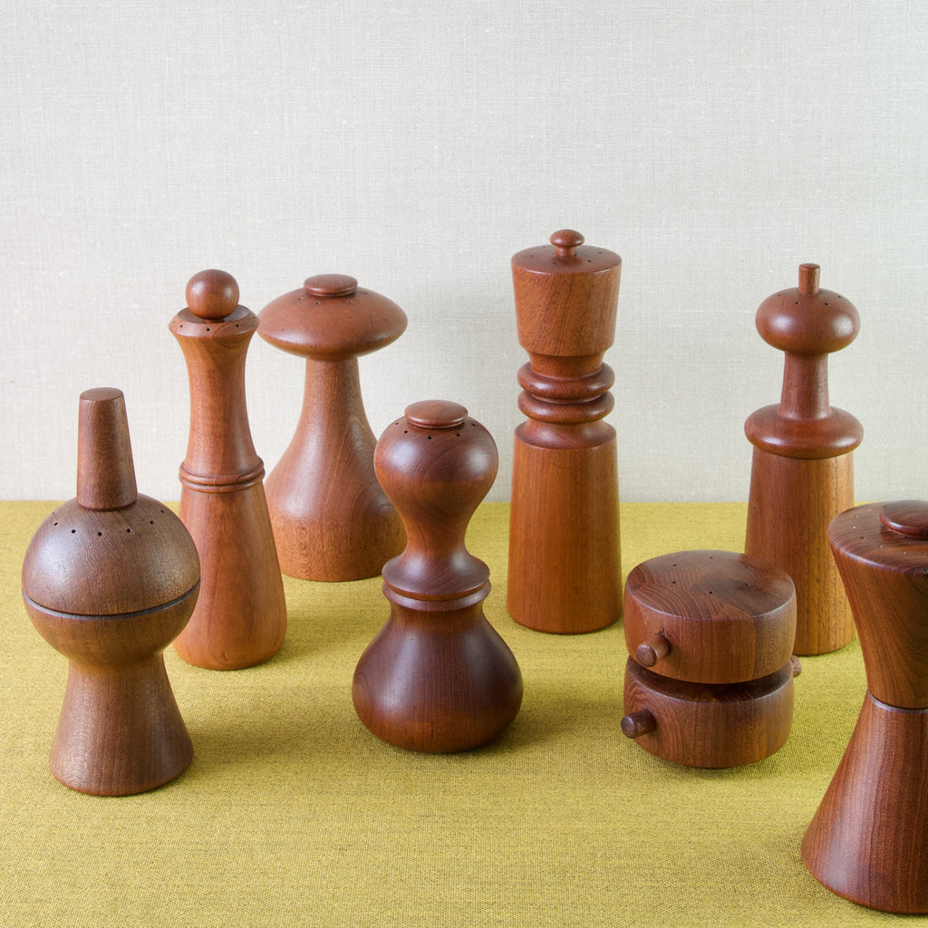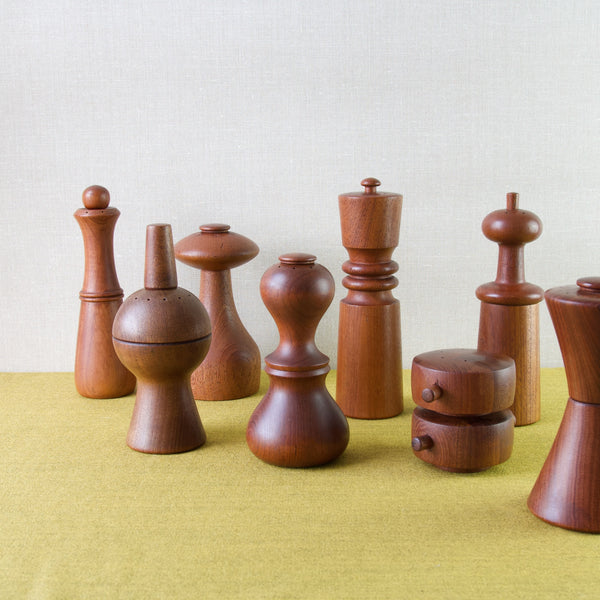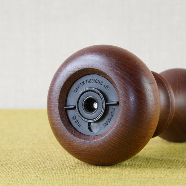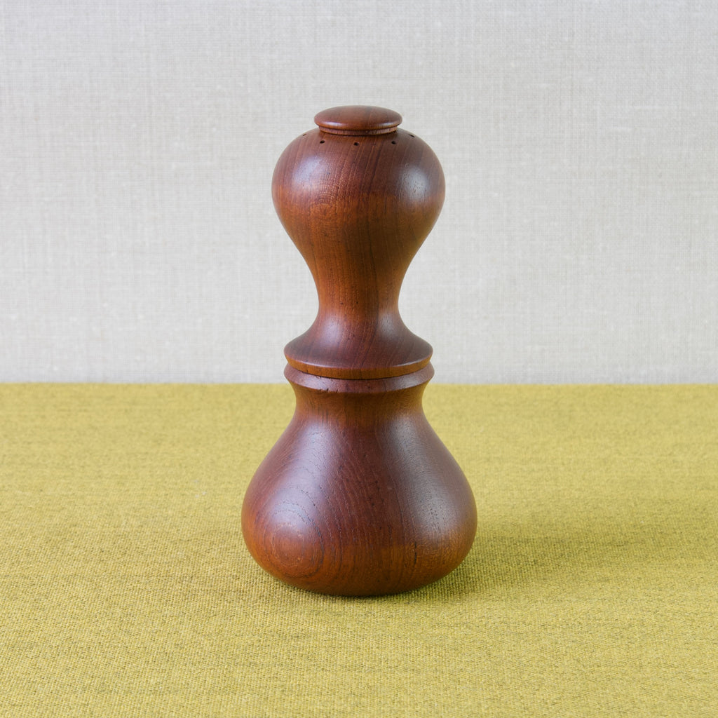 A carved solid teak salt and pepper mill designed by Jens Quistgaard for Dansk.