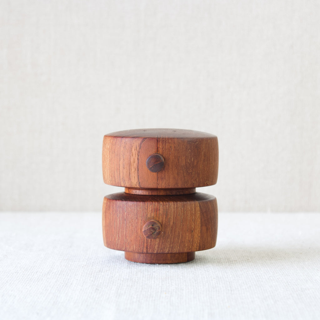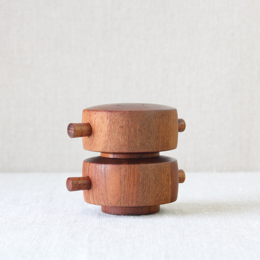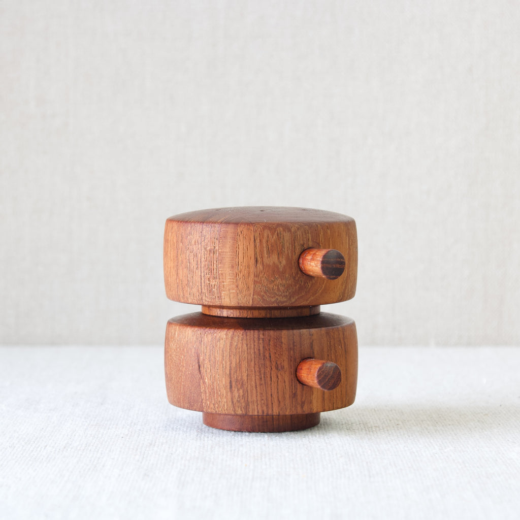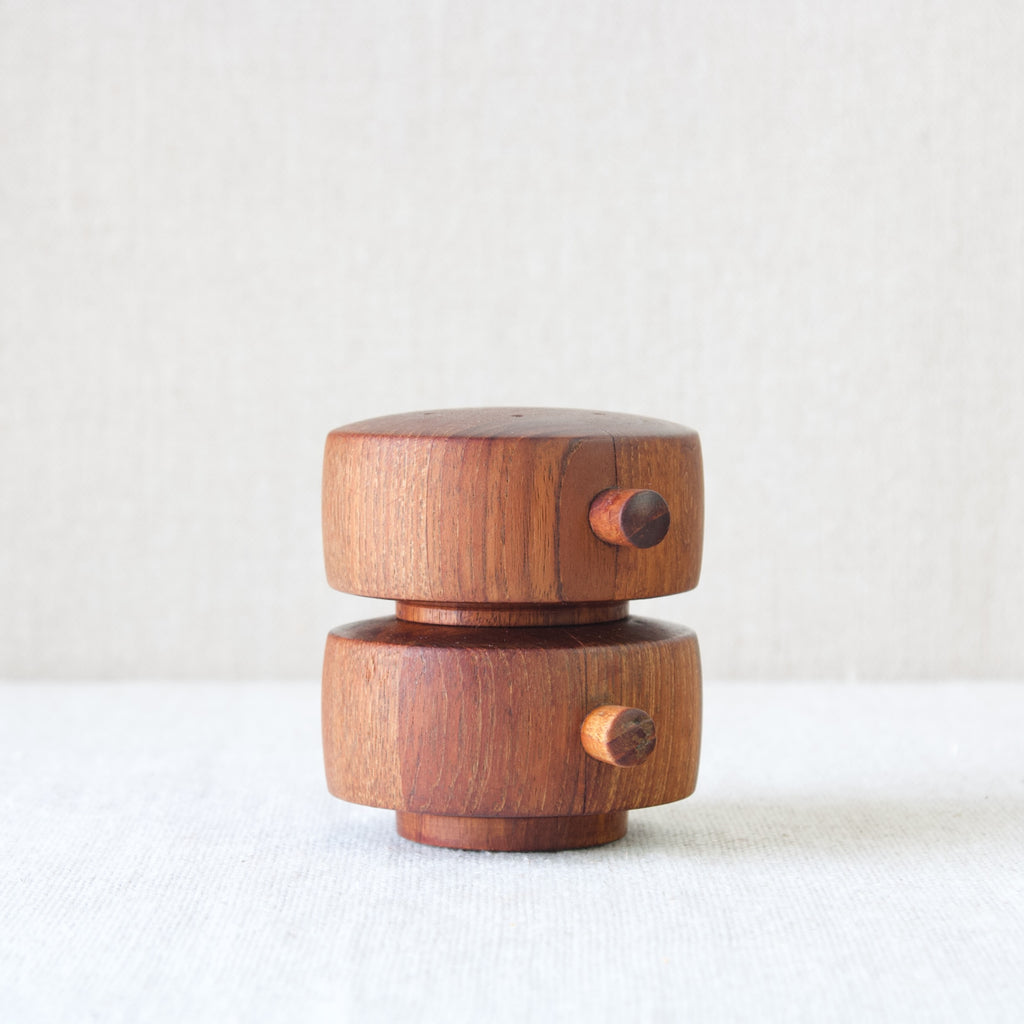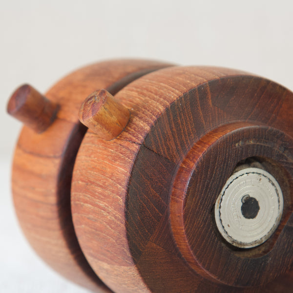 Carved solid teak salt and pepper combo mill - Drum design - Jens Quistgaard - Dansk Designs Denmark