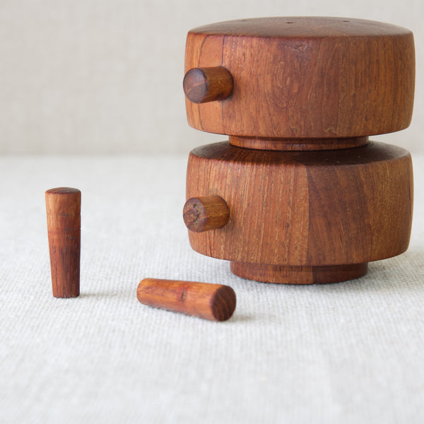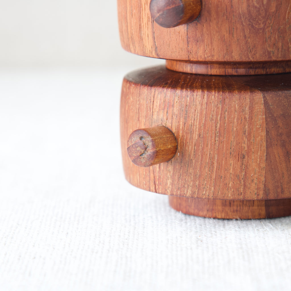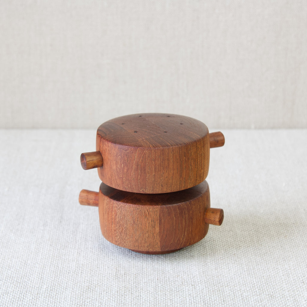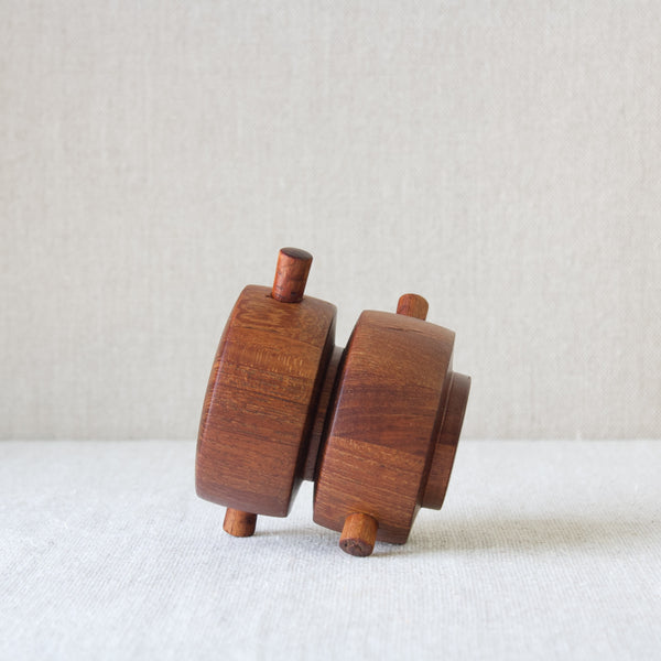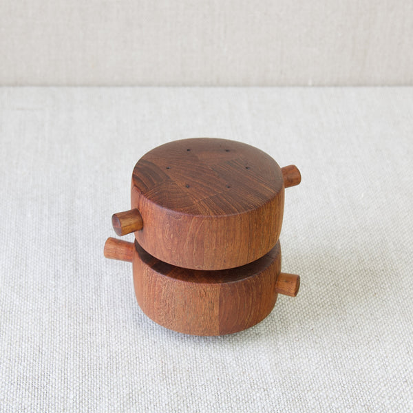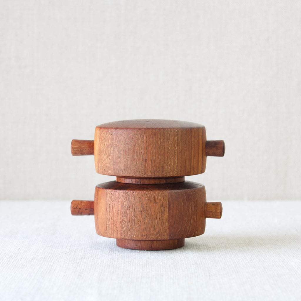 Carved solid teak salt and pepper combo mill - Drum design - Jens Quistgaard - Dansk Designs Denmark