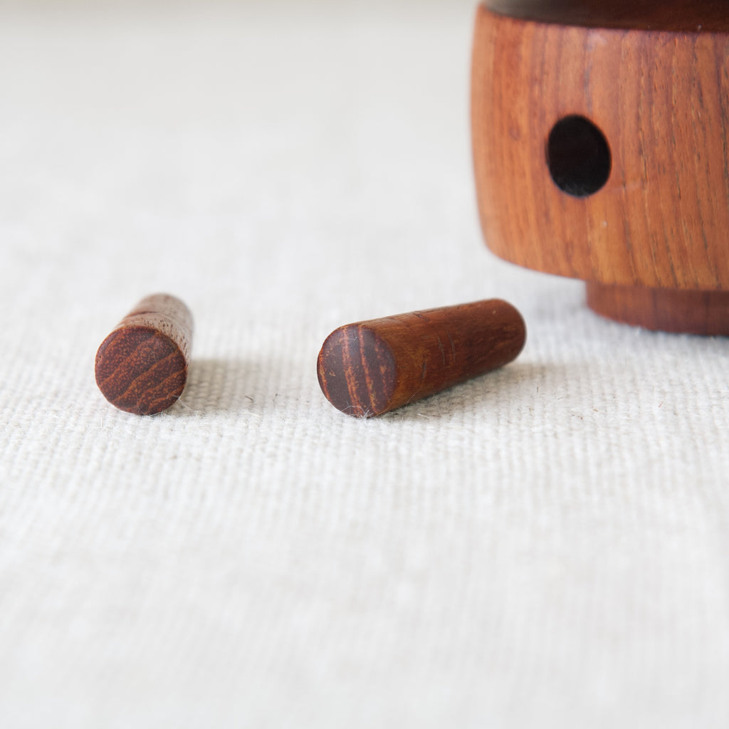 Teak peg stoppers from Jens Quistgaard salt and pepper combo mill - Model 824 - Dansk Designs Denmark