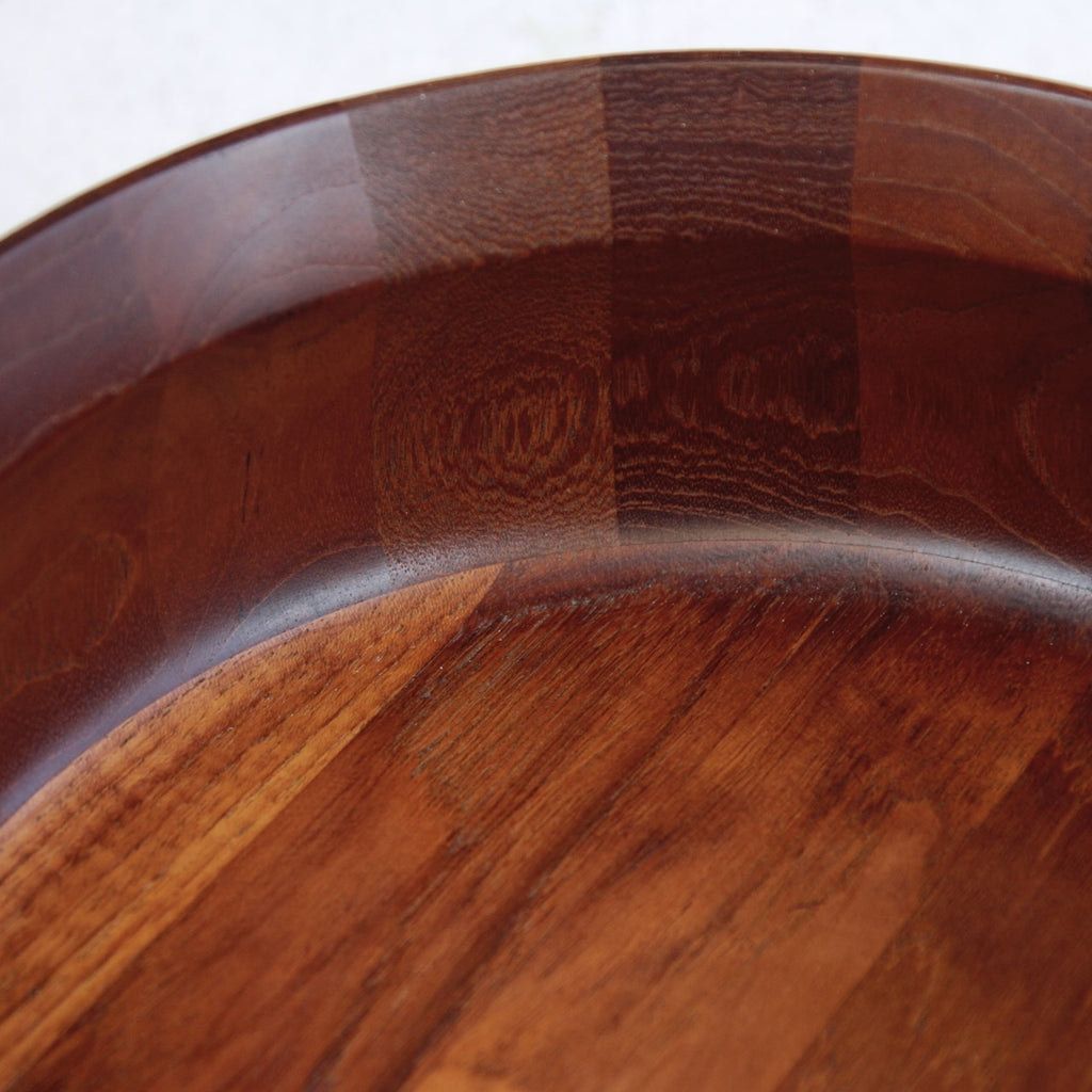 The bowl was carved on a lathe by a skilled craftsperson, and is made from 26 individual pieces of teak wood. These pieces are joined together before turning to give a subtle, decorative effect.