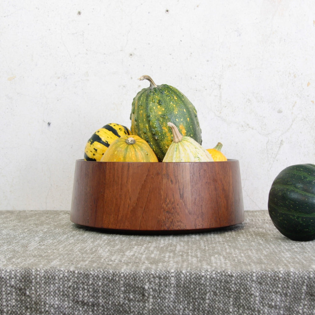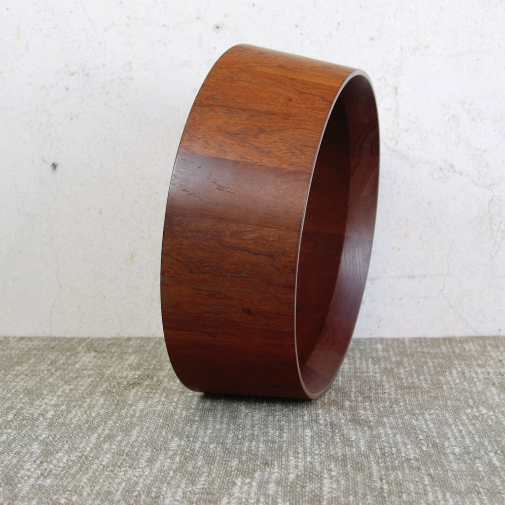 A large staved teak fruit bowl, or salad bowl, designed by Jens Quistgaard in the 1960's and handmade in Denmark for Dansk Designs, USA.