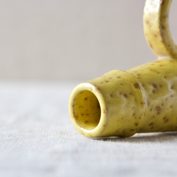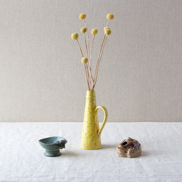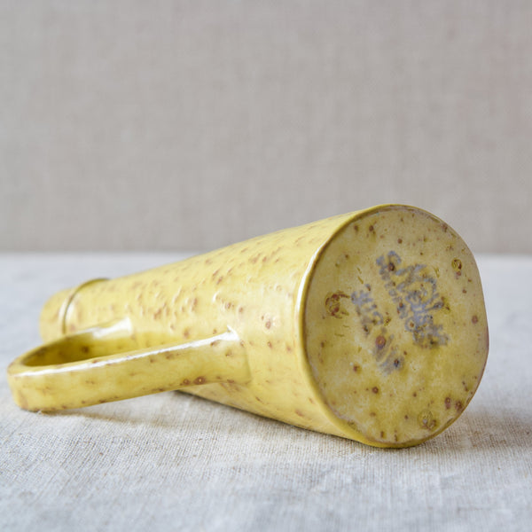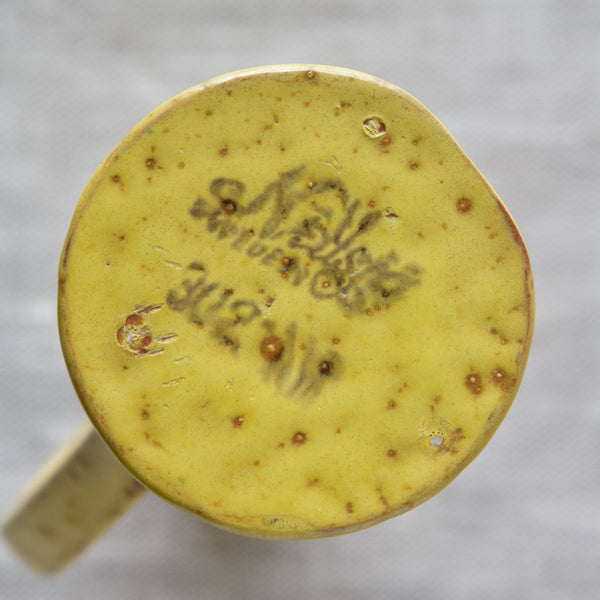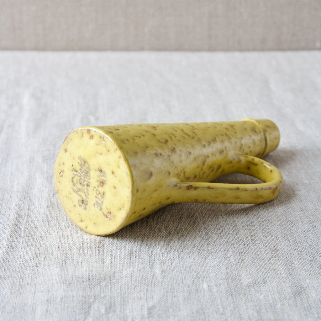 The bubbling yellow glaze of this piece was developed by Werkmäster during the Art Deco period, and was used by the Nittsjö factory into the 1950's.