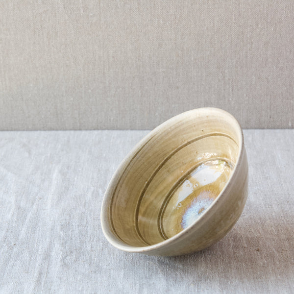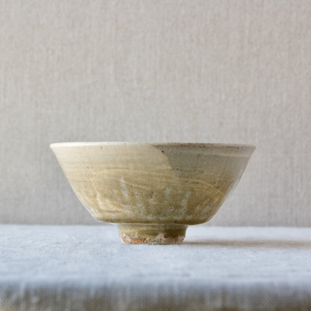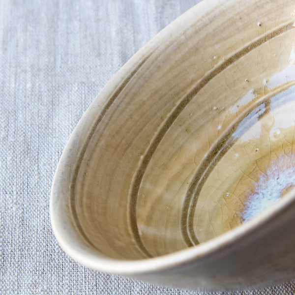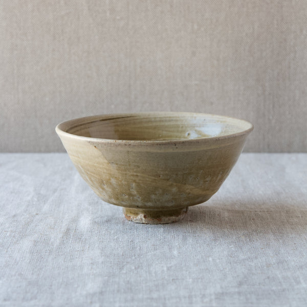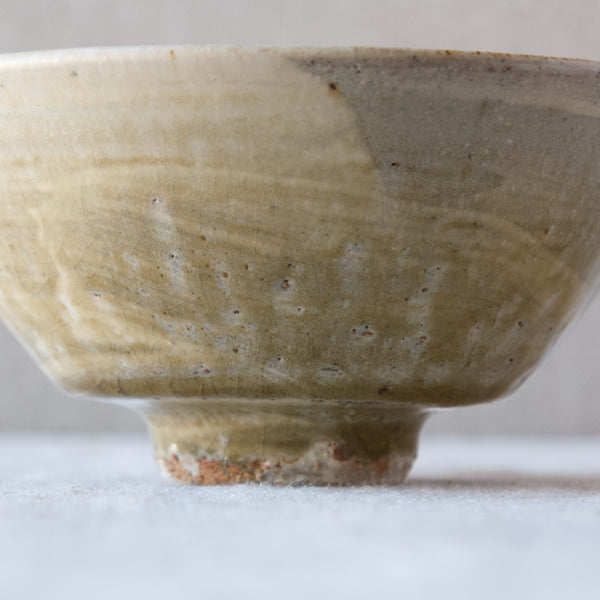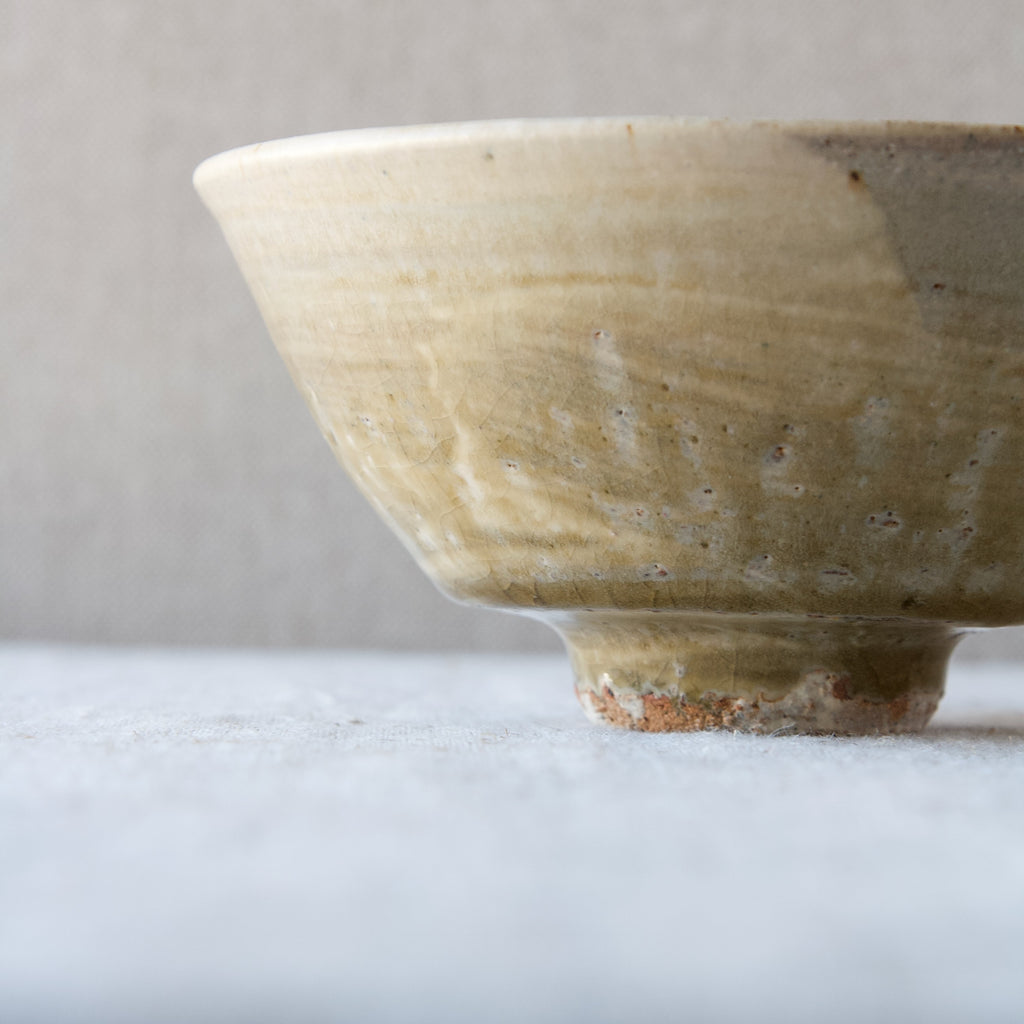 Adding to the tactility of this piece is the creamy hakeme slip which has been left undisturbed, externally. But, within the bowl, a spiral has been cut through the thickly applied coat of slip.