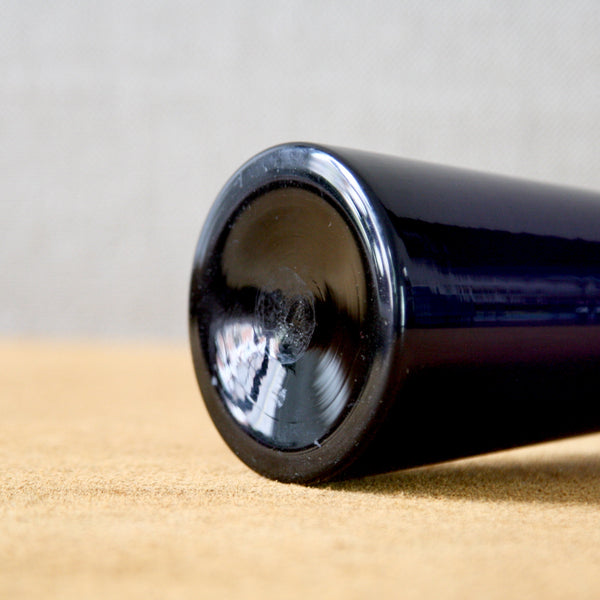 This tapered vase was turn mould blown. Meaning, the piece was 'turned' whilst in the mould to remove any joint lines. Resultantly, the silhouette of this geometric vase is as crisp and refined as its colour.