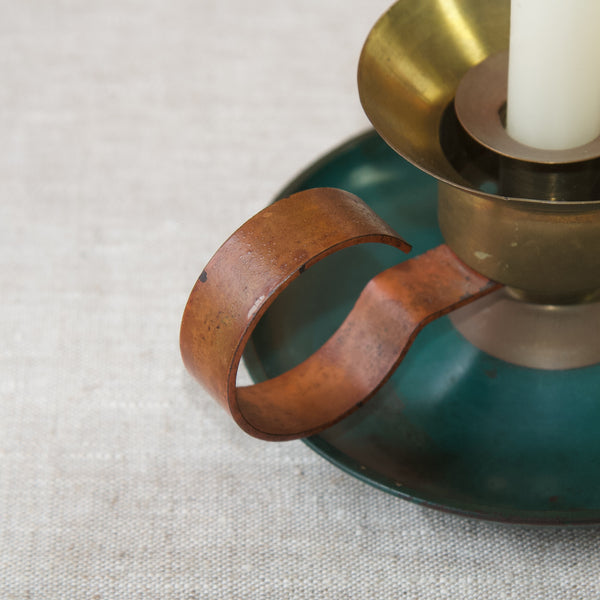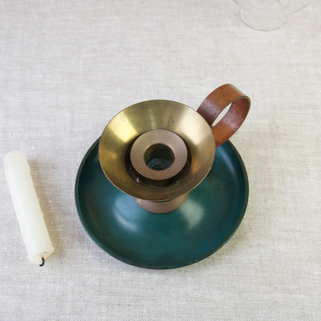 In December 1929, Brandt assumed the role of head of the 'design department for metal goods in coated steel panel' at the Ruppelwerk factory in Gotha, Germany. Her objective was to align the company's product range with the Bauhaus philosophy by modernising existing items and creating new, practical designs. Despite her innovative efforts, managerial constraints limited the implementation of Brandt's ideas and the factory persisted in producing its traditional offerings. Brandt's Modernist designs for Ruppelwerk, including this notable chamberstick, were only manufactured for the short period between 1930 and 1932.