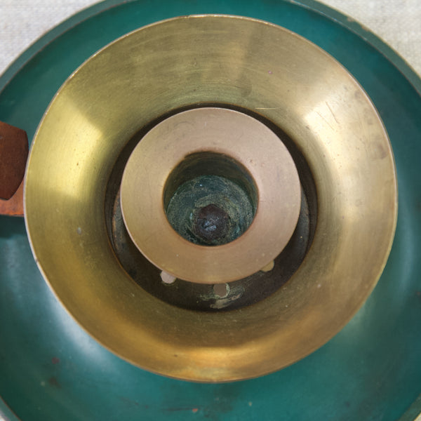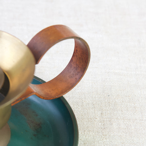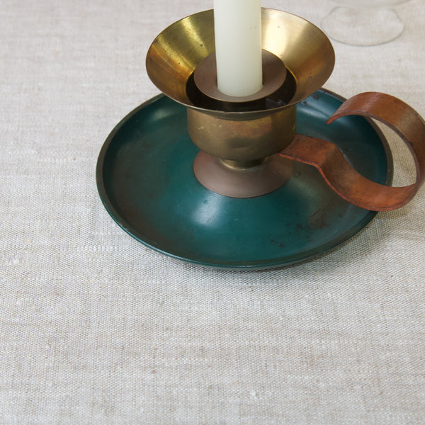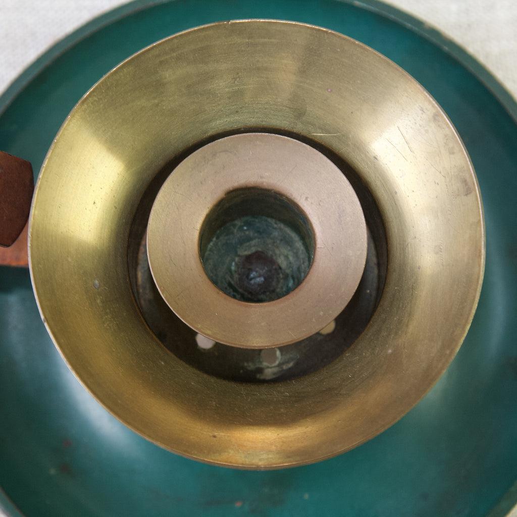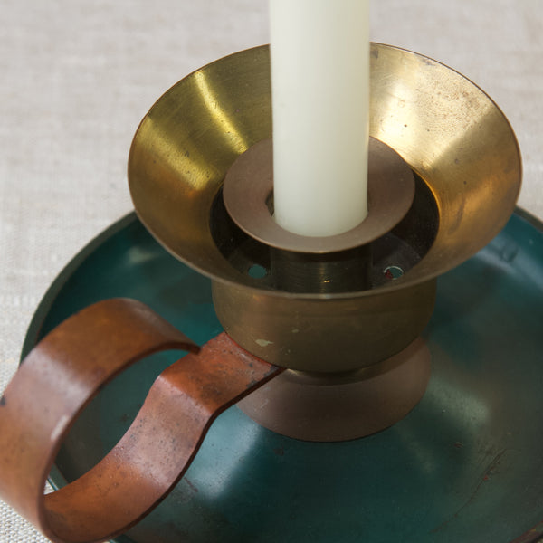 This steel & glass chamberstick serves as an indication of Brandt's revolutionary artistic vision for the Ruppelwerk factory. The Bauhaus design reflects an industrial aesthetic while maintaining a sense of elegance and simplicity. The object is highly practical and facilitates easy use & handling; a result of Brandt's emphasis on functionality. The enamelled chamberstick is formed from clean geometric shapes, which reflect the Bauhaus' commitment to mass production without sacrificing artistic integrity.