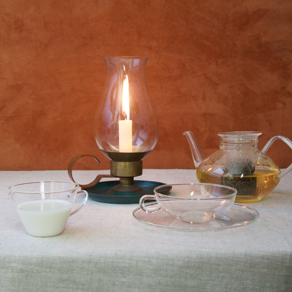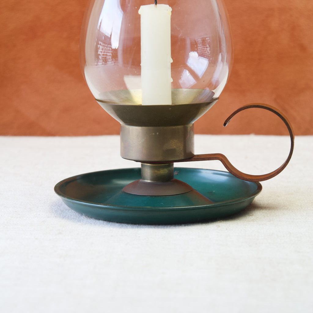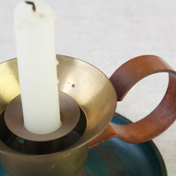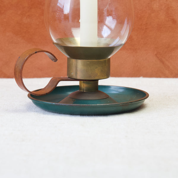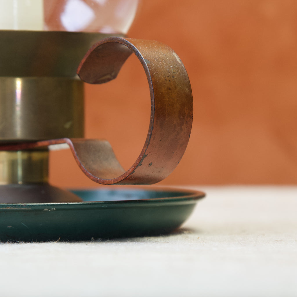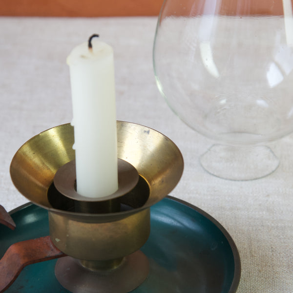One of the Bauhaus' fundamental principles was to combine innovative design with traditional craftspersonship. Brandt closely observed this ethos throughout her career. This chamberstick adheres to this philosophy, particularly as the glass shade has been handblown. The shade features many tiny bubbles within, providing a tangible sense of a handmade object & demonstrating Brandt's harmonious blend of progressive thinking and traditional craft.