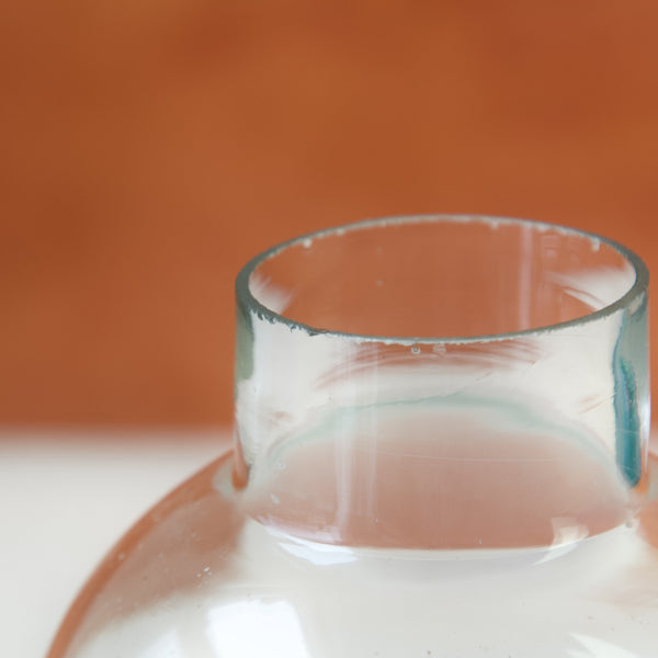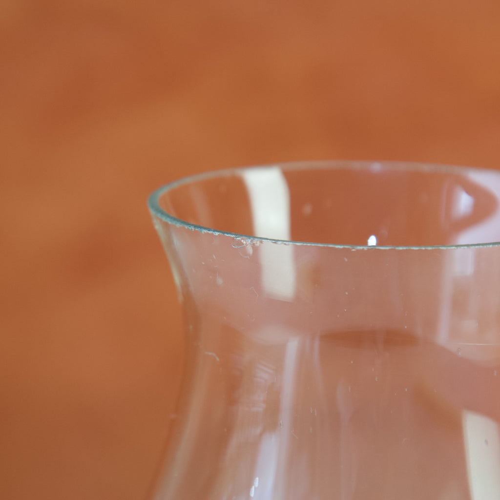 The glass has many tiny chips around both edges, with one small oyster chip to the mouth. There is a small area of scratching to one side of the glass with one notably deeper scratch.