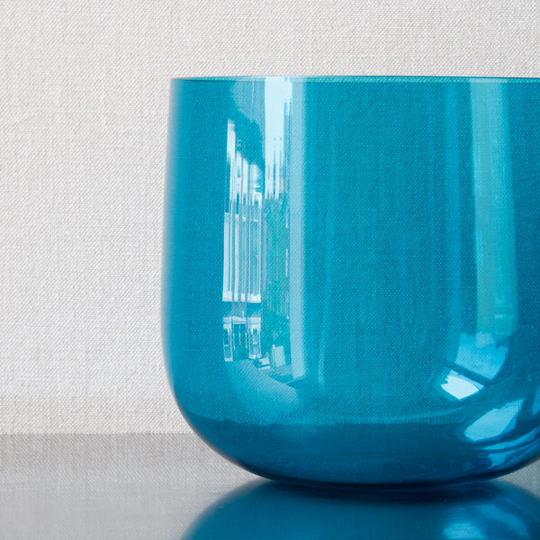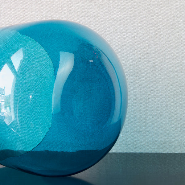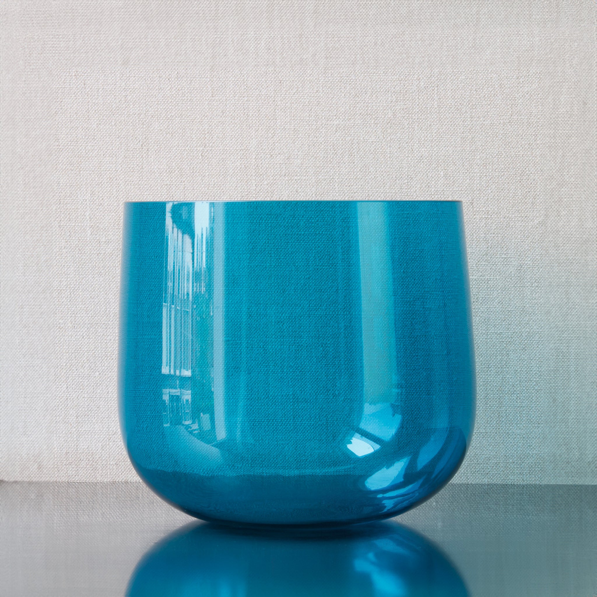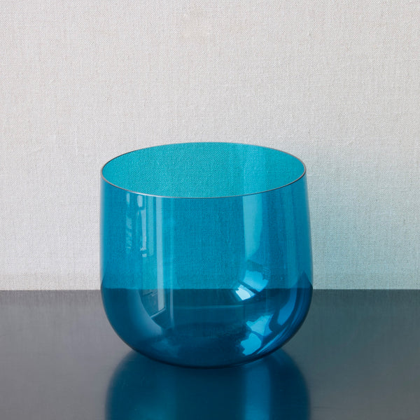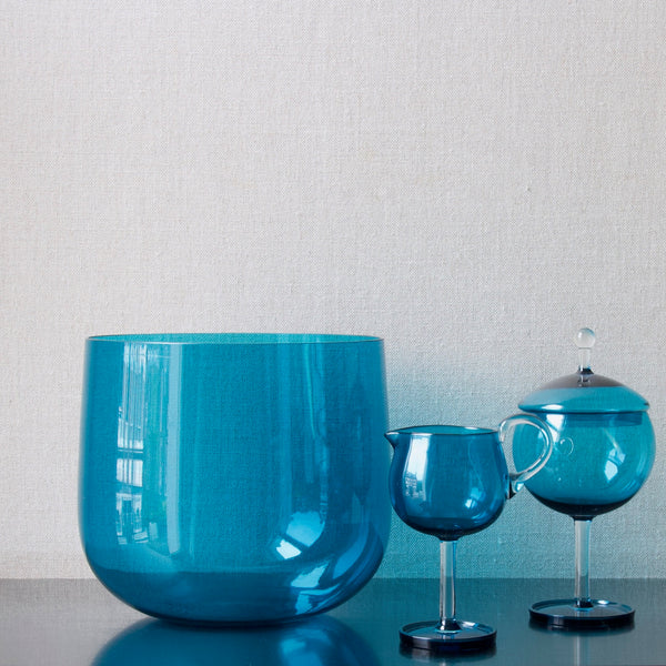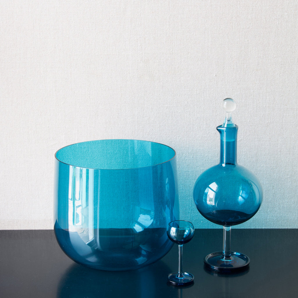 This impressive glass bowl was handmade during the 1960's at Riihimäki's famous glassworks. The refined beauty of this object is not only in Still's design; the subtly curved & tapered form in vibrant turquoise-blue glass, but also in the delicate finesse of the objects manufacture.