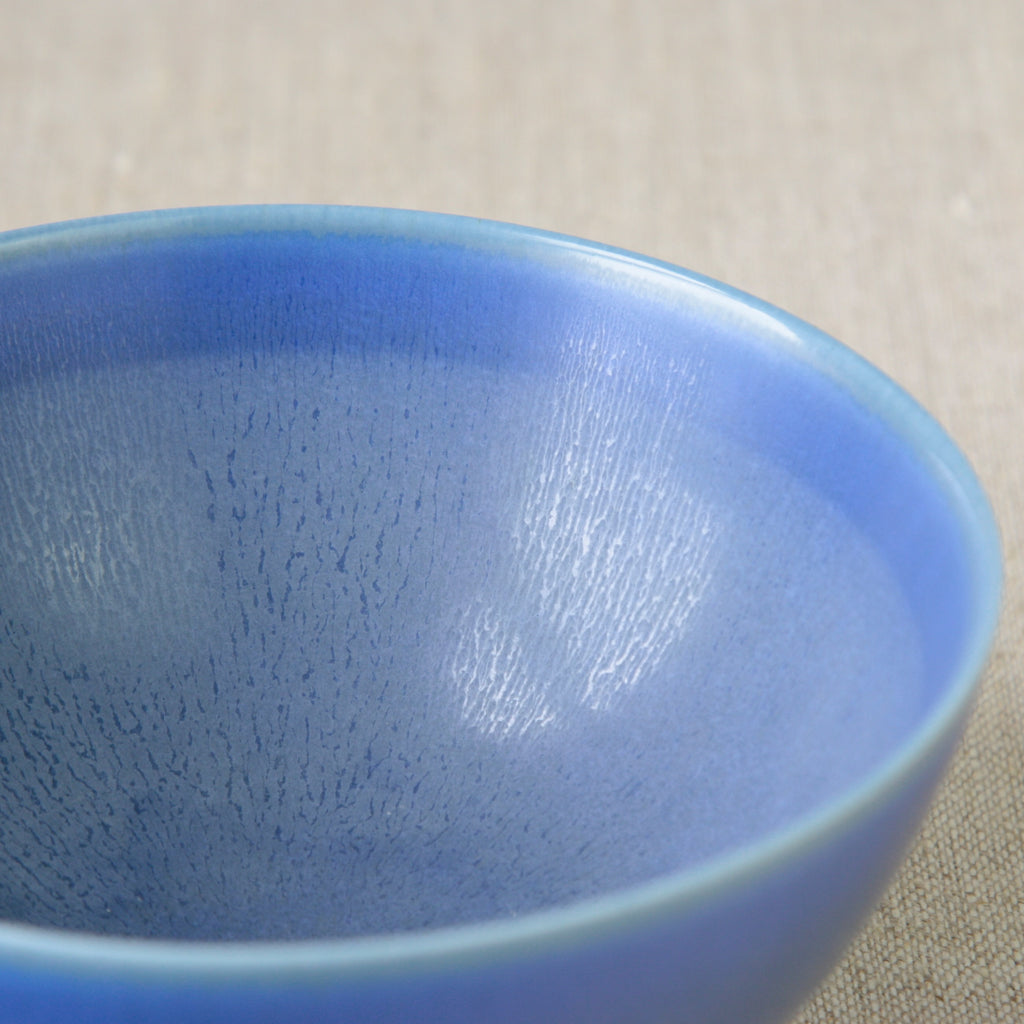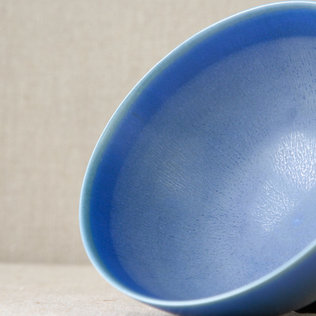 Early works by the workshop, like this bowl, are sparse in form and the perfect canvases for the exquisite matte ‘haresfur’ glazes they perfected in tones of blues, browns, creams and greens.