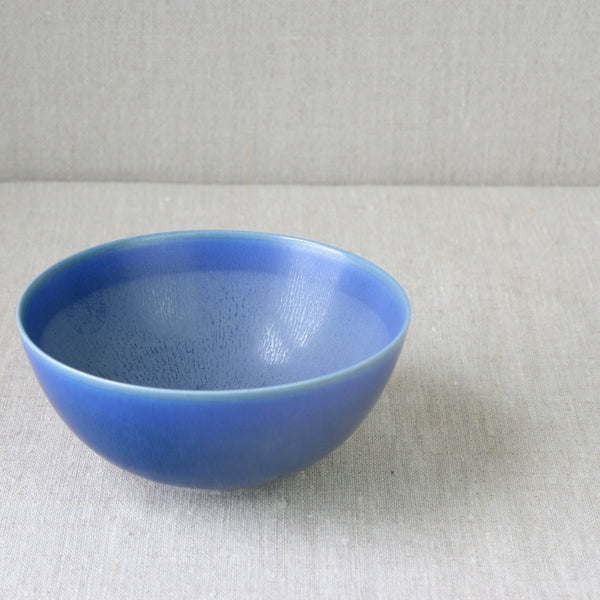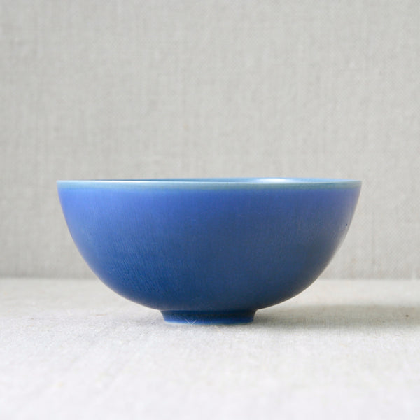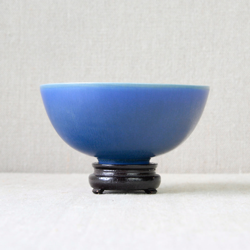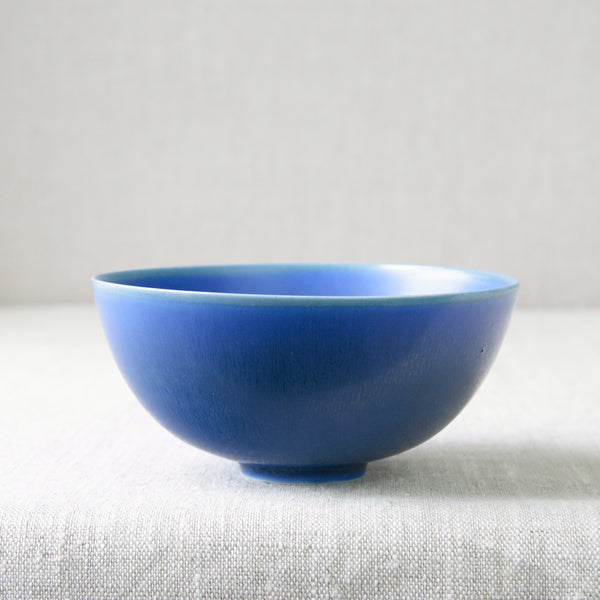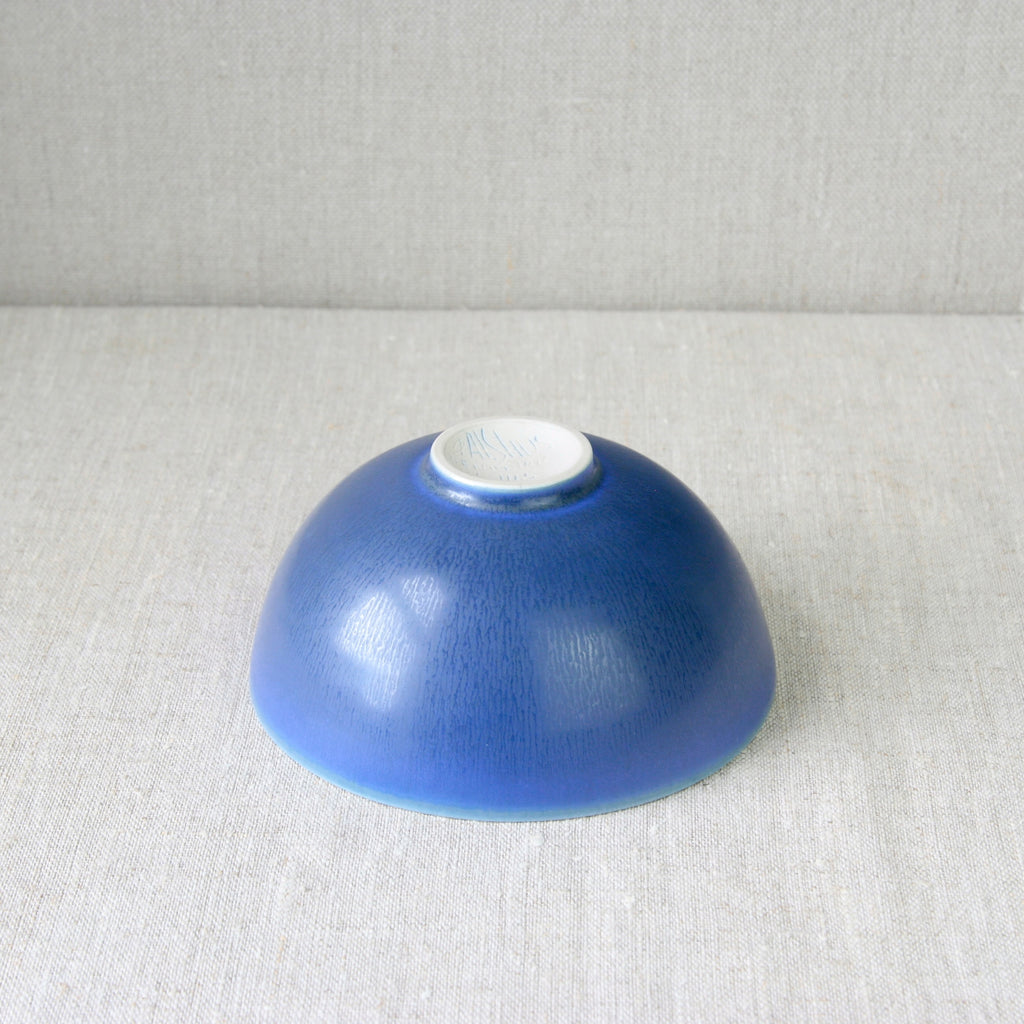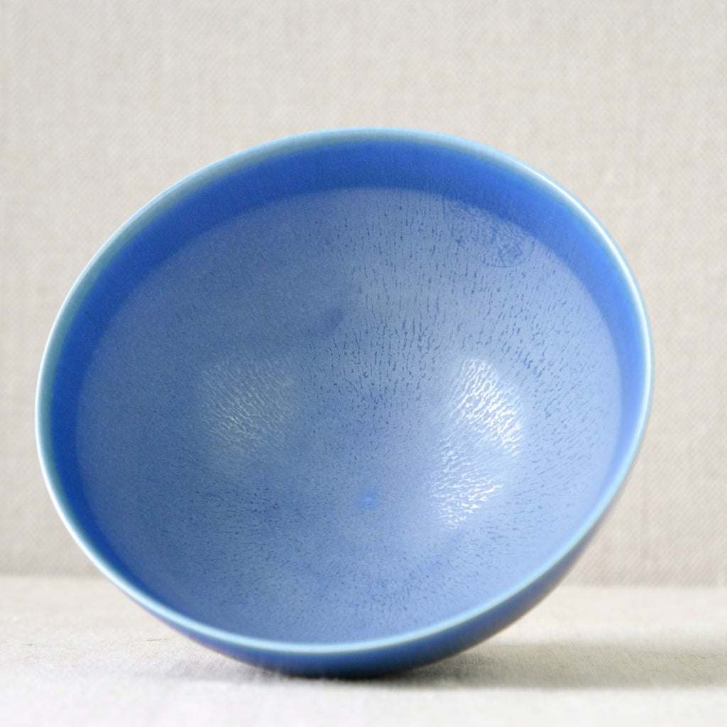 A hand-thrown, hand-glazed Modernist bowl with a bright blue ‘haresfur’ glaze designed and made by Per & Annelise Linneman-Schmidt for Palshus, Denmark, in the early-1950s.