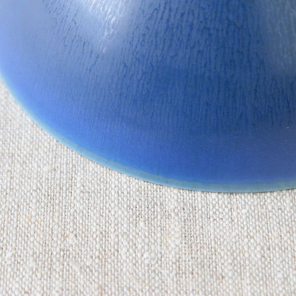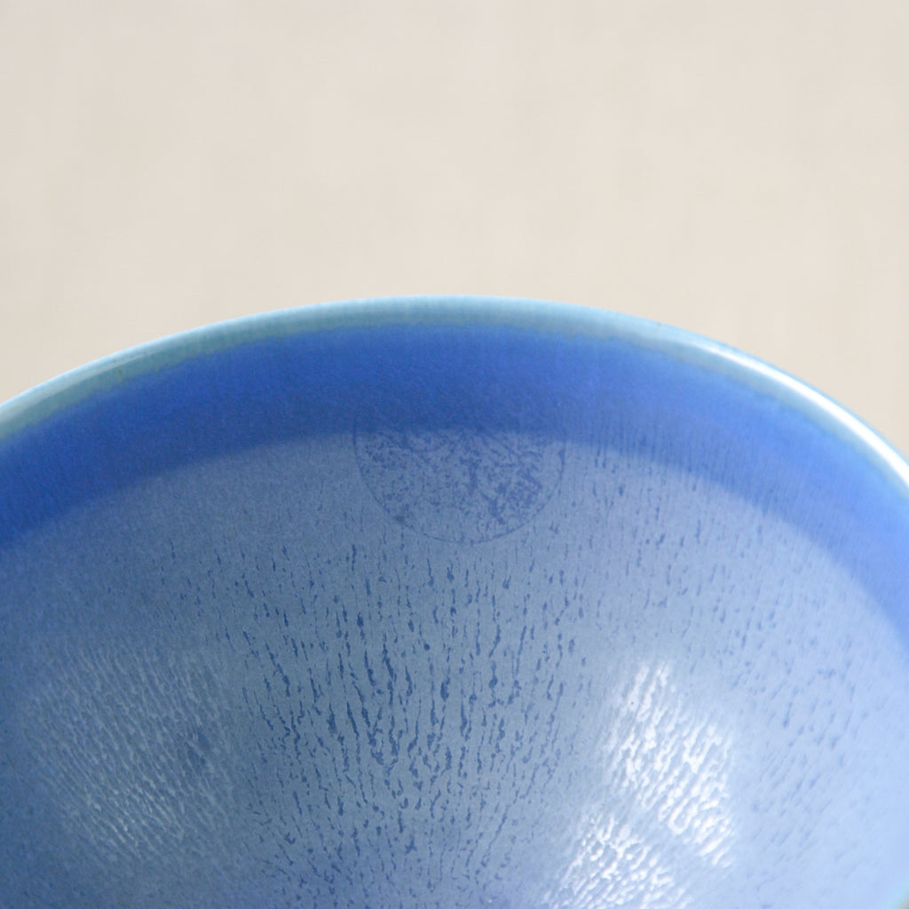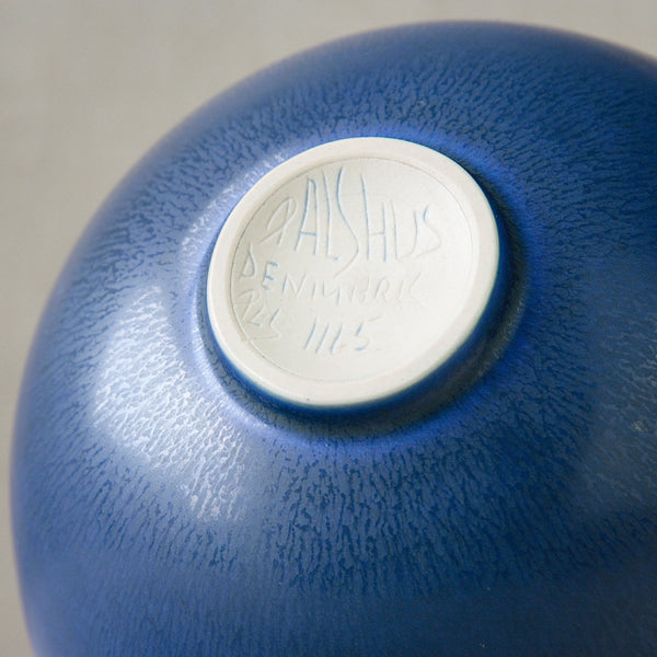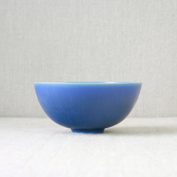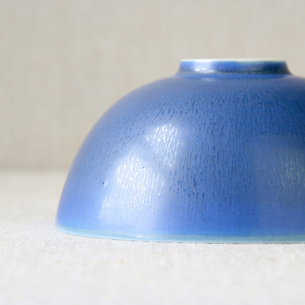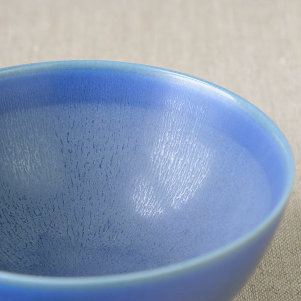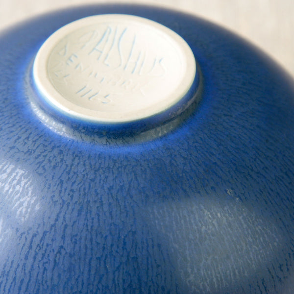 A hand-thrown, hand-glazed Modernist bowl with a bright blue ‘haresfur’ glaze designed and made by Per & Annelise Linneman-Schmidt for Palshus, Denmark, in the early-1950s.