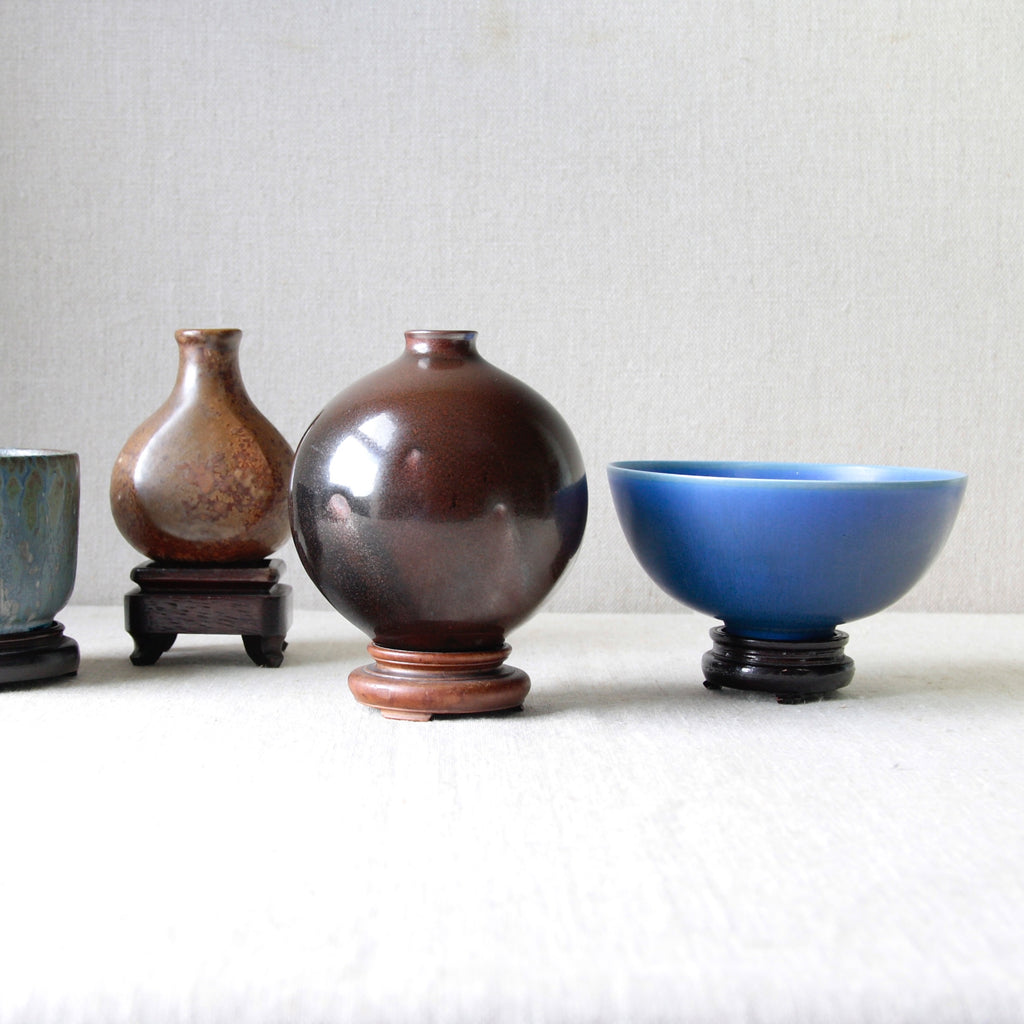 The effect arises when iron in the glaze seeps out during firing. The technique stems from the Song Dynasty, 960-1279. However, it was popularised again in the mid-twentieth century by Rörstrand, Sweden. Interest in Chinese ceramics in Sweden grew in the 1900s with thanks to the connoisseur, Gustav (VI) Adolf, the Crown Prince of Sweden and one of the founders of the ‘Kinaklubben’ (The China Club) in 1929. [1]