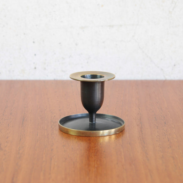 This candlestick exemplifies Rohac’s ability to balance form and function with quiet grace. Although modest in scale, it commands attention through its pleasing & perfectly proportioned silhouette - composed of simple circles and cylinders. This tactile & useful object has been black-patinated & accented with polished brass in the typical Viennese fashion.