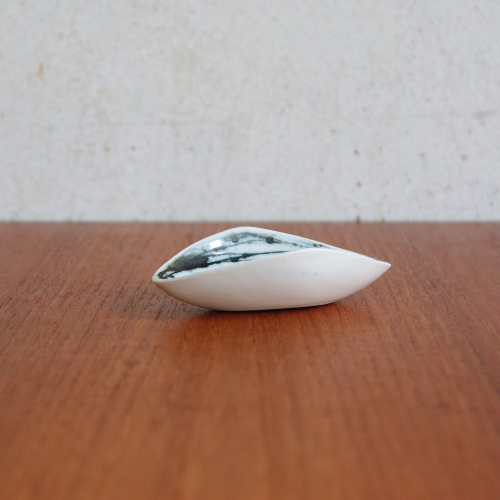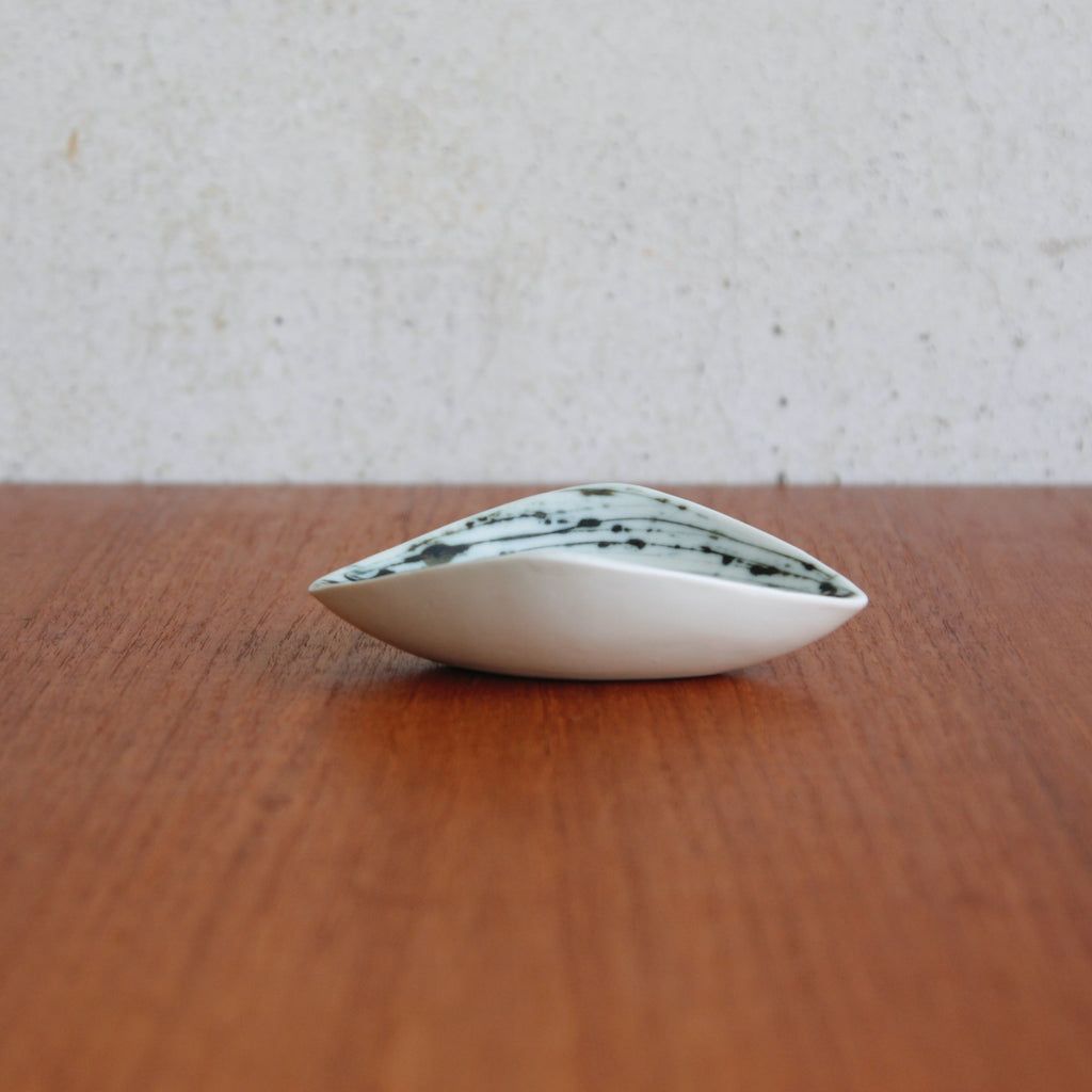 The form of this shallow bowl is a soft diamond shape with gently upturned edges, reminiscent of an unfurling leaf. Its organic Modernist profile is not only practical but evocative of 1950s style.