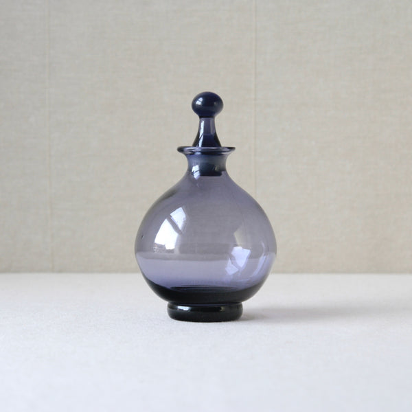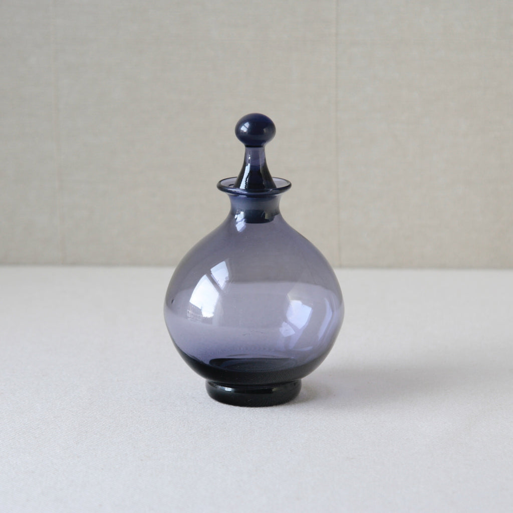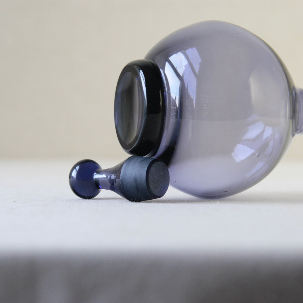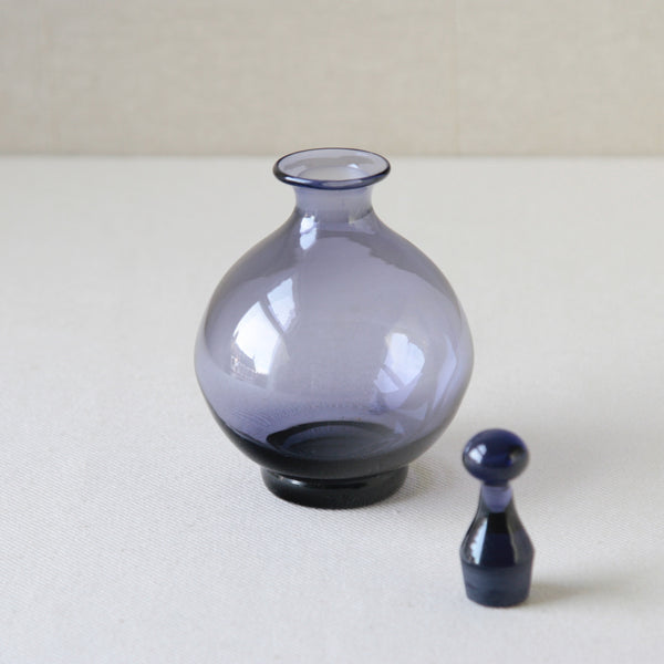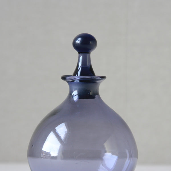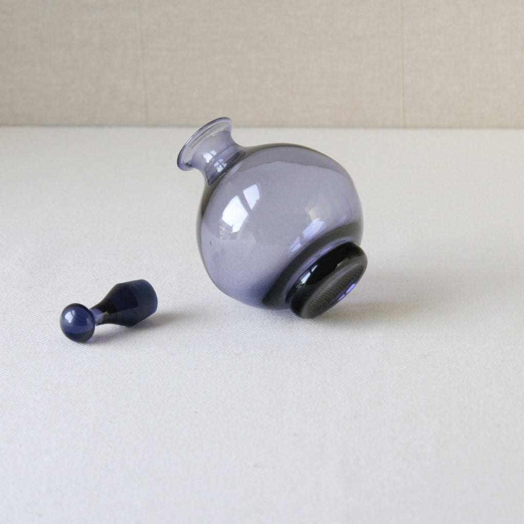 This delicate decanter is one of Tamara Aladin's earliest works for Riihimäki, and displays a softer, more organic expression than the bold and highly geometric style more associated with her work. The bottle, like a droplet of water, seems to draw influence from Organic Modernism; an artistic style perfected by Finland's glass designers during the 1950's. Early works by Aladin's contemporary and colleague, Nanny Still, are also in-line with this softened rendition of Modernist design.