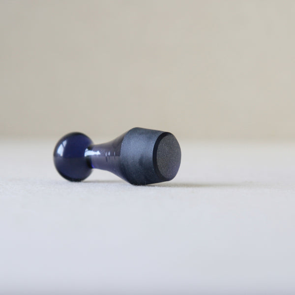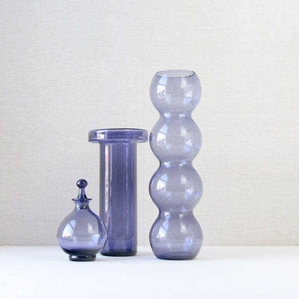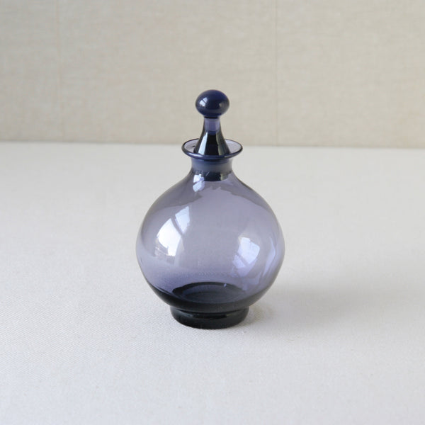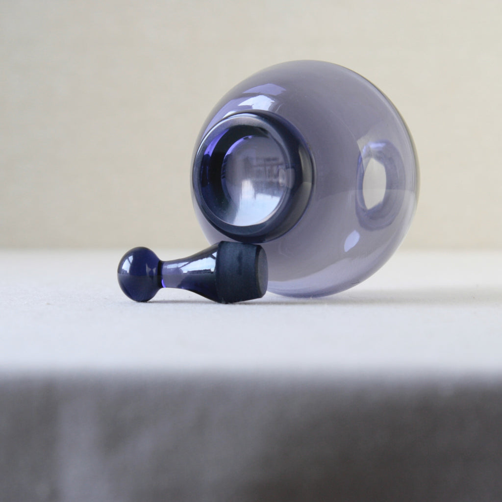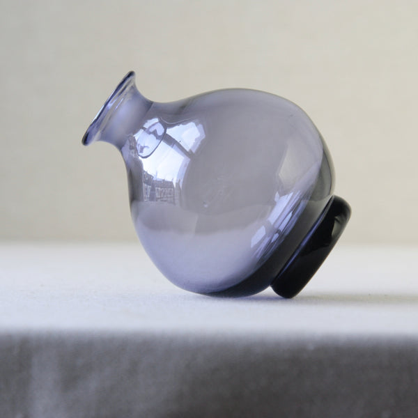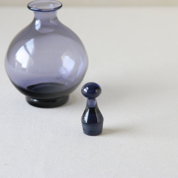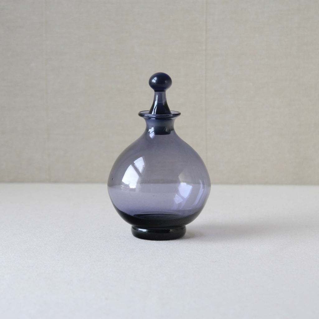 This delicate decanter is one of Tamara Aladin's earliest works for Riihimäki, and displays a softer, more organic expression than the bold and highly geometric style more associated with her work. The bottle, like a droplet of water, seems to draw influence from Organic Modernism; an artistic style perfected by Finland's glass designers during the 1950's. Early works by Aladin's contemporary and colleague, Nanny Still, are also in-line with this softened rendition of Modernist design.