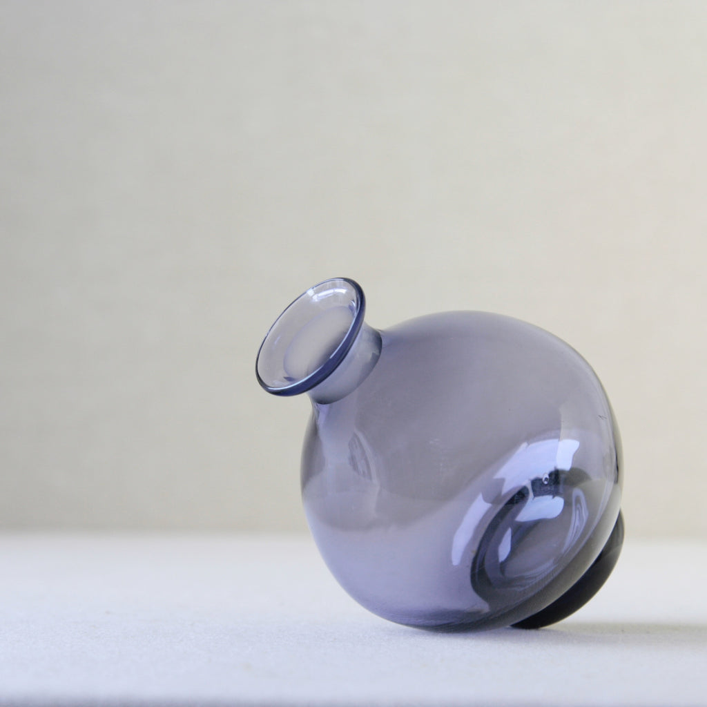 This vinegar bottle, with model number 1750, is handmade in an attractive lilac-coloured glass. The decanter's flared rim holds a distinctive glass stopper, which, like the design's body, also evokes a droplet of water.