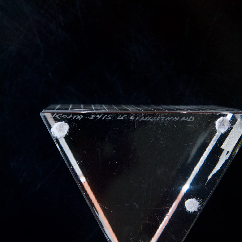 A large engraved sculpture from Vicke Lindstrand's 'Prism' series for Kosta, Sweden, circa 1965.