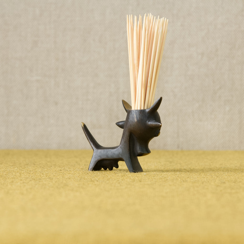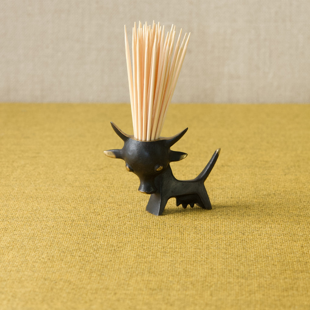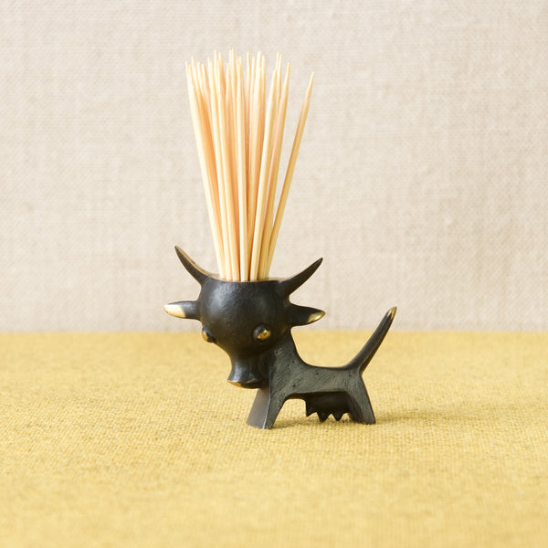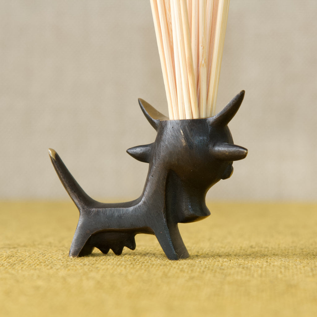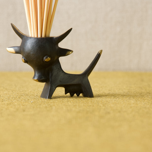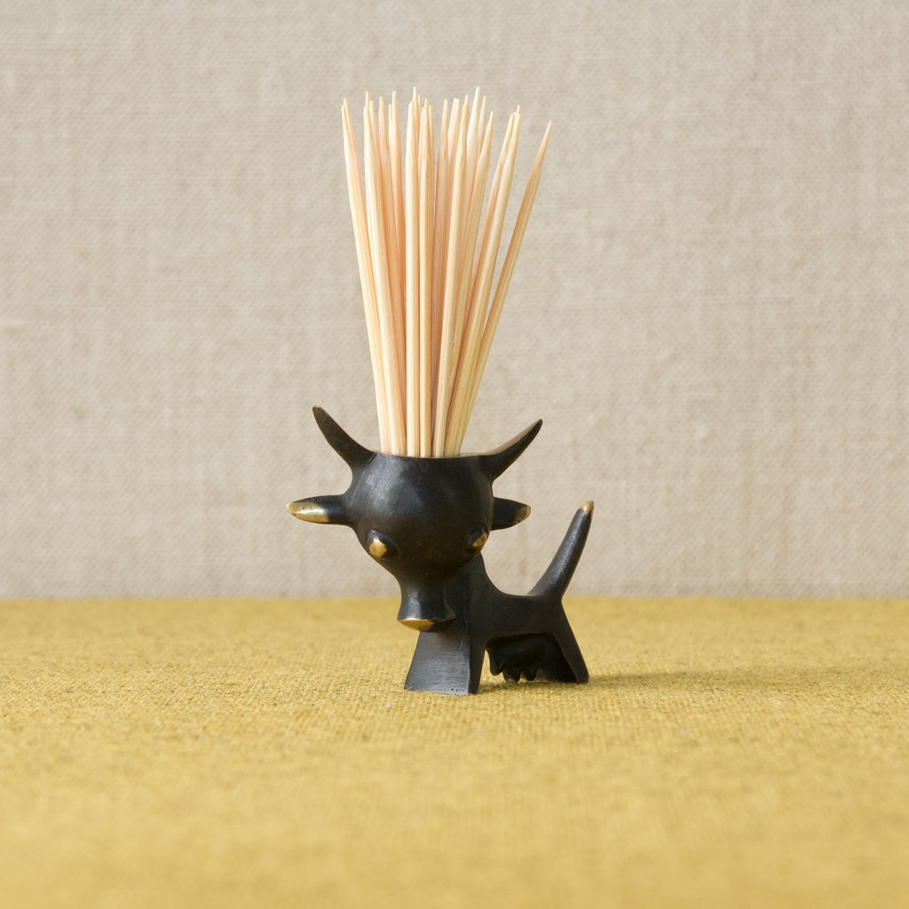 A stylish toothpick or candle holder in the form of a cow. This object was designed by Walter Bosse and made in the 1950's by Herta Baller, Vienna, Austria.