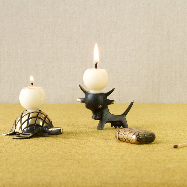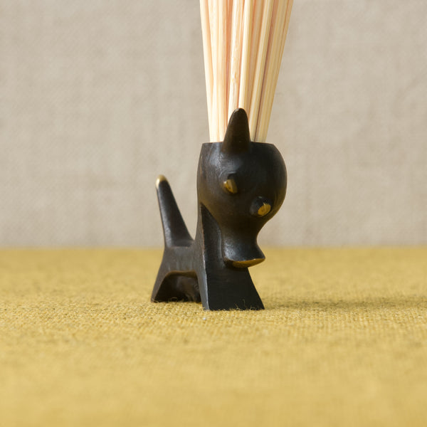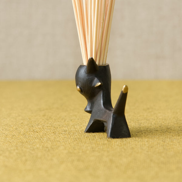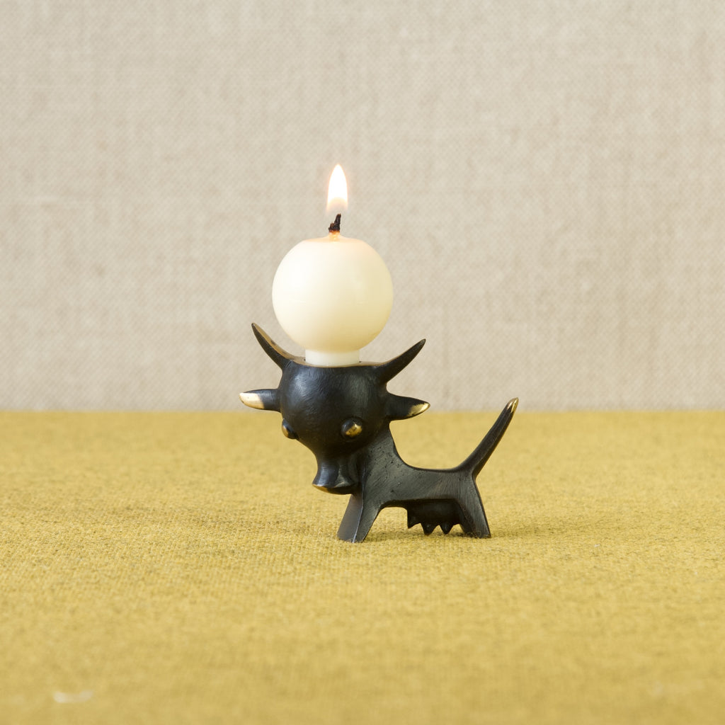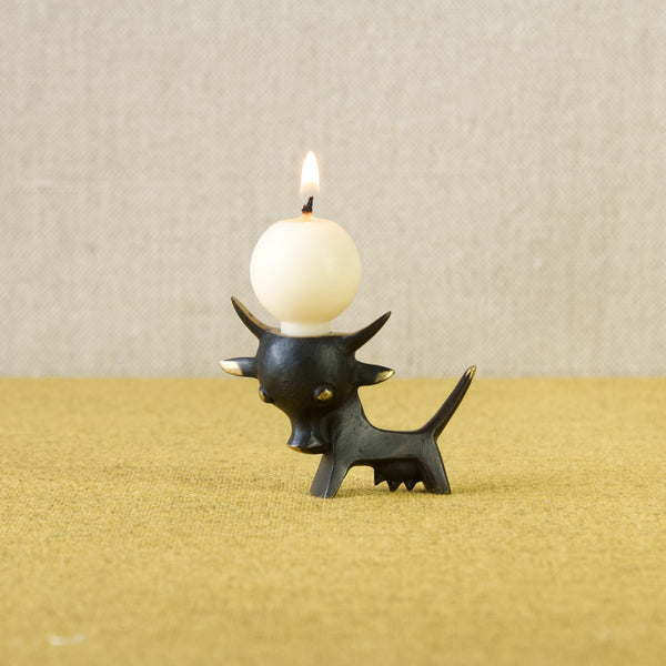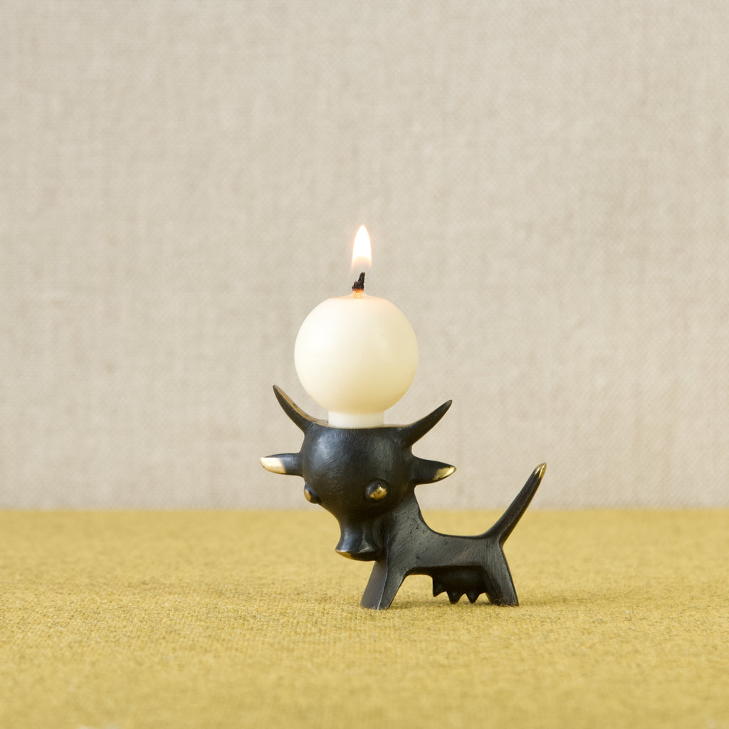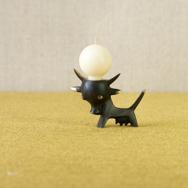 A stylish toothpick or candle holder in the form of a cow. This object was designed by Walter Bosse and made in the 1950's by Herta Baller, Vienna, Austria.