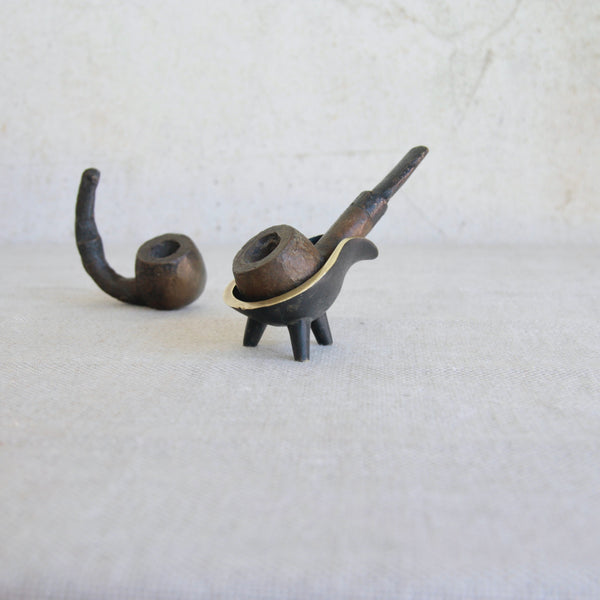 A sculptural brass pipe rest designed by Walter Bosse and handmade c.1950 in Vienna, Austria, at the Herta Baller workshop.