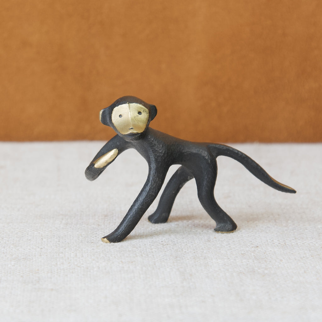 Although his career began in ceramics, Walter Bosse is best known for his whimsical 'black-golden' line of patinated brass animals, such as this monkey. Early examples, like this, are revered for their quality of design and manufacture.