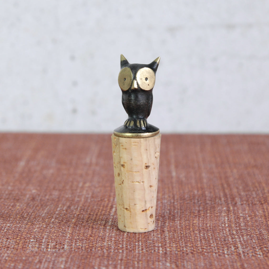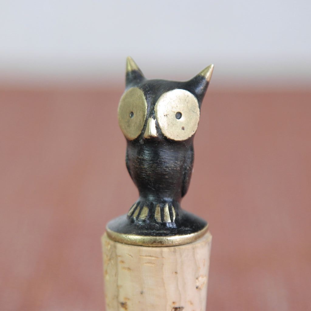 A brass bottle stopper in the form of an owl, designed by Walter Bosse and produced by Herta Baller, Vienna, Austria, c.1950.