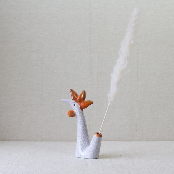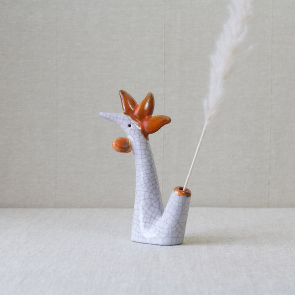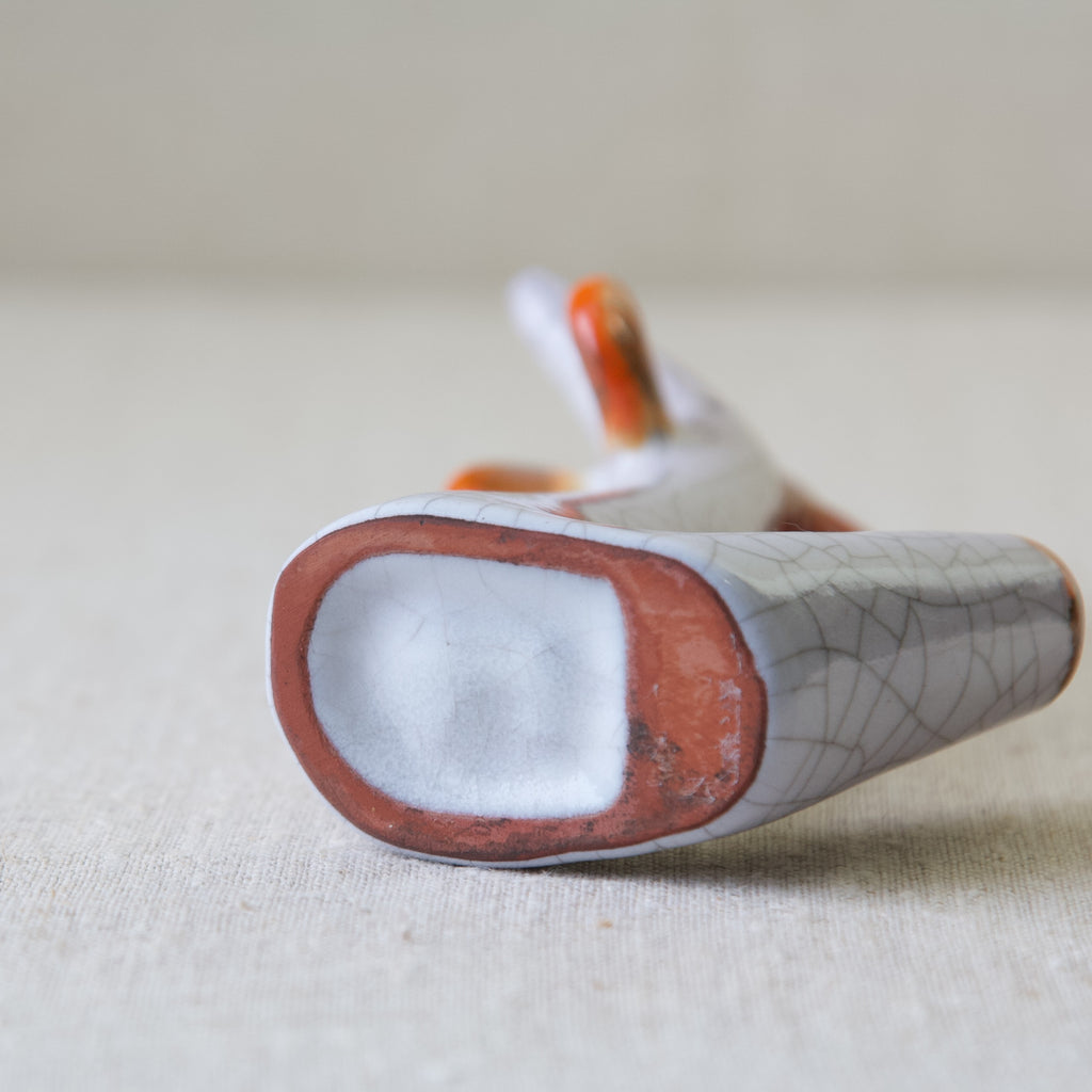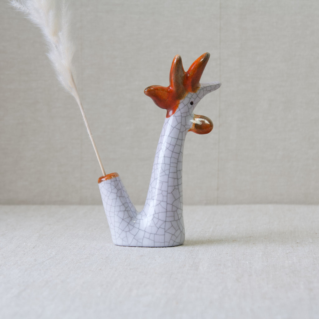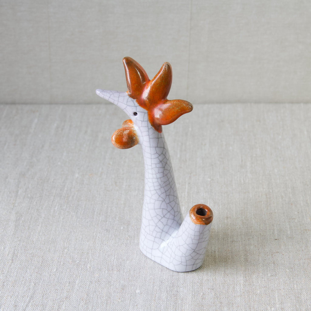 A stylised rooster quill/pen holder designed by Walter Bosse for the majolica ceramic workshop of Karlsruhe, Germany, circa 1960.