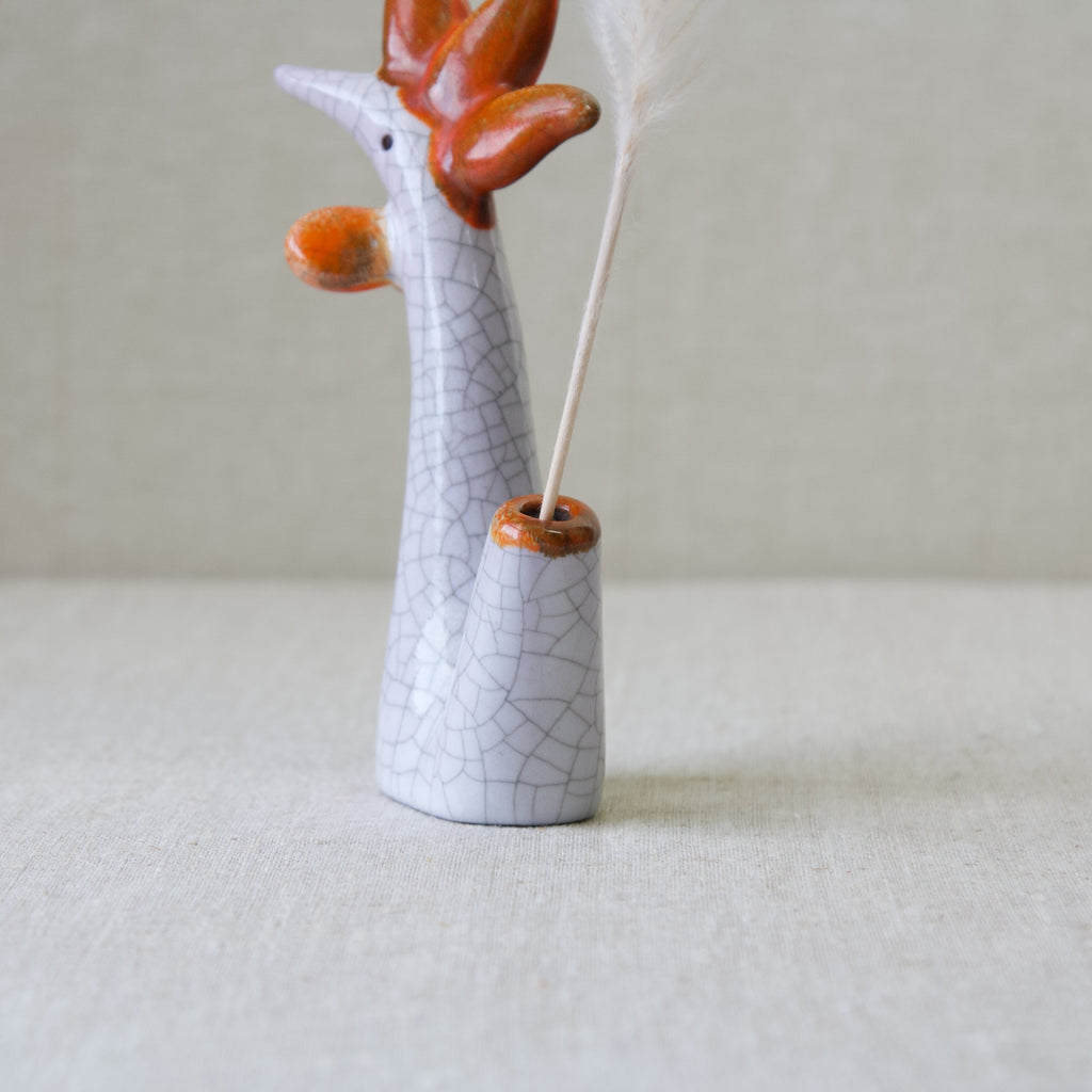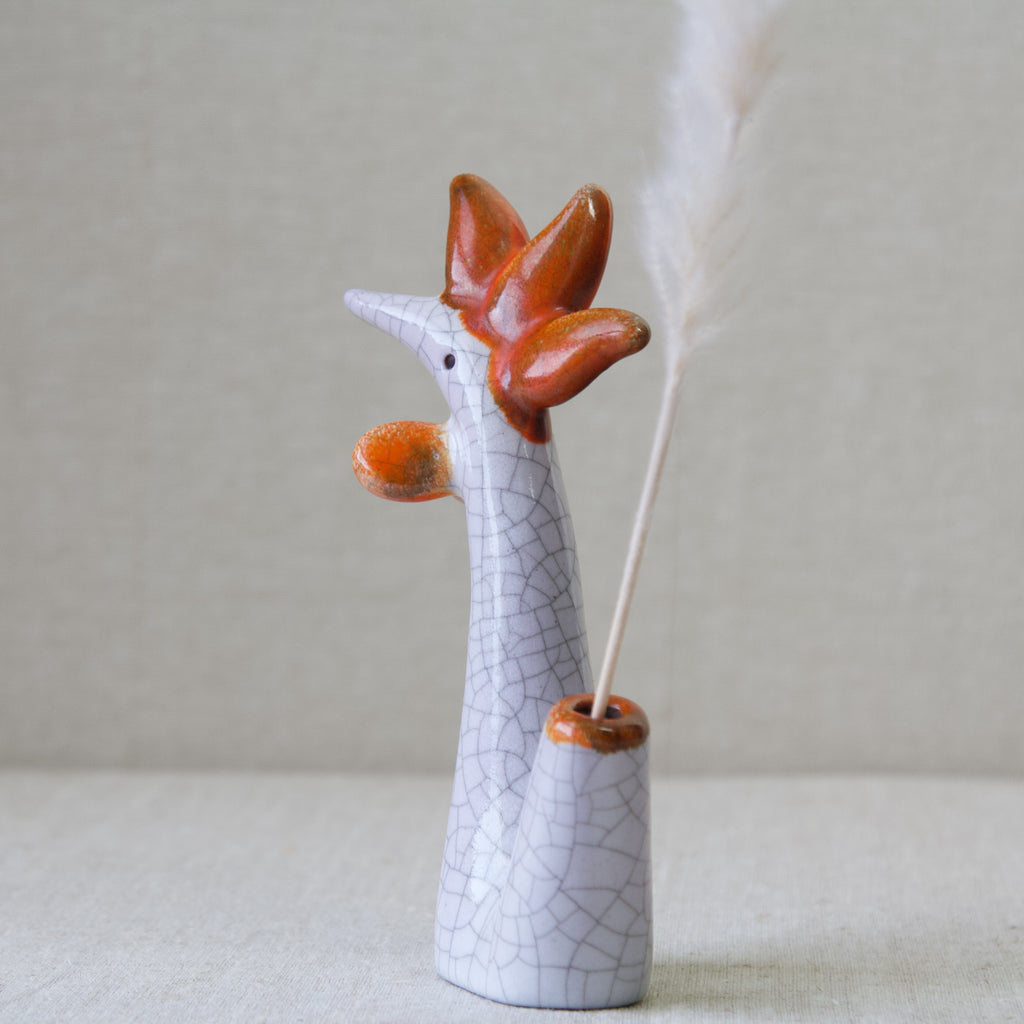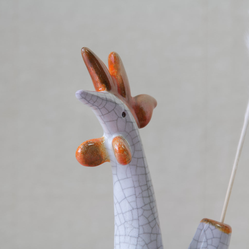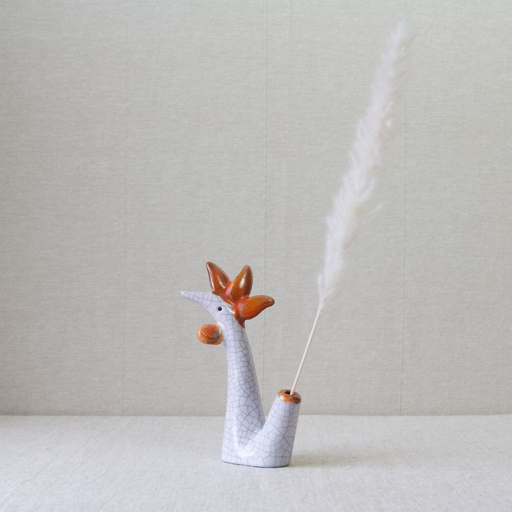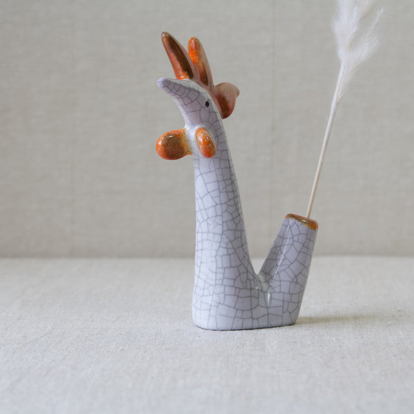 A stylised rooster quill/pen holder designed by Walter Bosse for the majolica ceramic workshop of Karlsruhe, Germany, circa 1960.